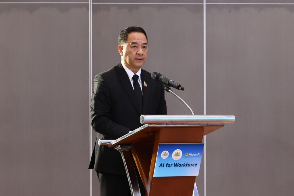 นางสาวตรีนุช เทียนทอง รัฐมนตรีว่าการกระทรวงแรงงาน กล่าวว่า “วันนี้ดิฉันรู้สึกยินดีและเป็นเกียรติอย่างยิ่งที่ได้มาเป็นประธานในงานแถลงข่าวความร่วมมือ AI for Workforce ระหว่างกรมพัฒนาฝีมือแรงงาน กับ บริษัท ไมโครซอฟท์ (ประเทศไทย) จำกัด  ในยุคที่เศรษฐกิจโลกกำลังก้าวเข้าสู่การขับเคลื่อนด้วยดิจิทัลอย่างเต็มรูปแบบ เทคโนโลยีสมัยใหม่ ไม่ว่าจะเป็นปัญญาประดิษฐ์ (AI) คลาวด์ (Cloud) ดาต้า (Data) ความมั่นคงปลอดภัยไซเบอร์ (Cybersecurity) และระบบอัตโนมัติ (Automation) กำลังเปลี่ยนแปลงรูปแบบการทำงานของทุกภาคส่วนอย่างรวดเร็ว ประเทศไทยจำเป็นต้องเร่งพัฒนาคนของเราให้มีทักษะที่พร้อมต่อการเปลี่ยนแปลง เพื่อรักษาความสามารถในการแข่งขันและยกระดับคุณภาพชีวิตของแรงงานไทยทุกกลุ่ม การ Upskill – Reskill ให้แรงงานไทยก้าวทันการเปลี่ยนแปลงของเทคโนโลยีและเศรษฐกิจดิจิทัล จึงเป็นอีกหนึ่งนโยบายสำคัญของกระทรวงแรงงาน