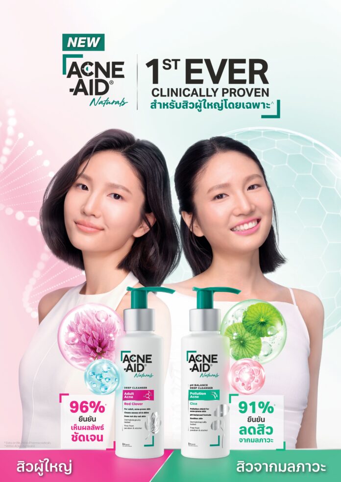 สิวในวัยผู้ใหญ่เกิดจาก 2 สาเหตุหลัก คือ ปัจจัยภายใน ได้แก่ ความไม่สมดุลของฮอร์โมน ความเครียด และ ปัจจัยภายนอกได้แก่ มลภาวะ ฝุ่น ควัน ซึ่งก่อให้เกิดปัญหาสิวที่แตกต่างกันออกไป ด้วยสาเหตุหลัก 2 ประการนี้ จึงนำไปสู่การจัดการปัญหาที่ต่างกัน Acne-Aid ในฐานะแบรนด์ผู้เชี่ยวชาญด้านการดูแลสิว และเป็นที่ยอมรับในวงการแพทย์ผิวหนังจึงคิดค้นผลิตภัณฑ์ใหม่ โดยเน้นองค์ประกอบและให้ความสำคัญกับการ “เข้าใจสิวผู้ใหญ่” มากกว่าการจัดการสิวแบบเดิม ผ่านกลุ่มผลิตภัณฑ์ใหม่ “Acne-Aid Naturals” ที่ได้นำเอาสารสกัดจากธรรมชาติผนวกเข้ากับส่วนผสมทางวิทยาศาสตร์เพื่อช่วยยกระดับการจัดการปัญหาสิวในวัยผู้ใหญ่ได้อย่างตรงจุด มีประสิทธิภาพ และเห็นผลลัพธ์ได้อย่างชัดเจนมากยิ่งขึ้นผ่านสองกลุ่มผลิตภัณฑ์ ได้แก่ Adult Acne สำหรับสิววัยผู้ใหญ่ และ Pollution Acne สำหรับสิวที่เกิดจากมลภาวะ