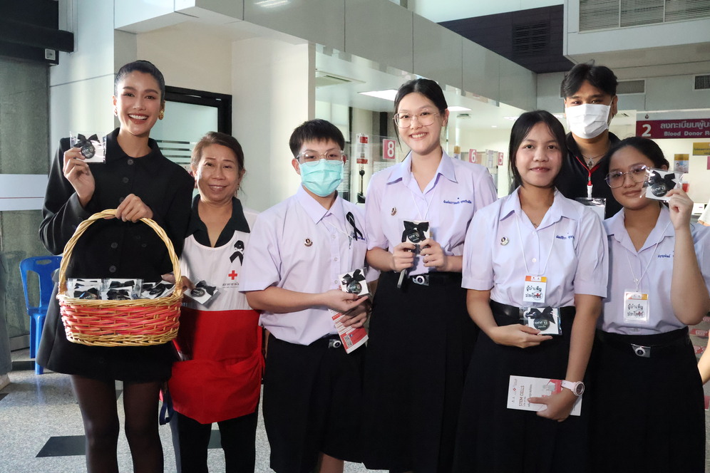 “ช่องวัน31” ส่งนักแสดง “เอม-แนท-นิว-เจ้าคุณ” แจกริบบิ้นดำถวายความอาลัย แก่ผู้มาบริจาคโลหิต