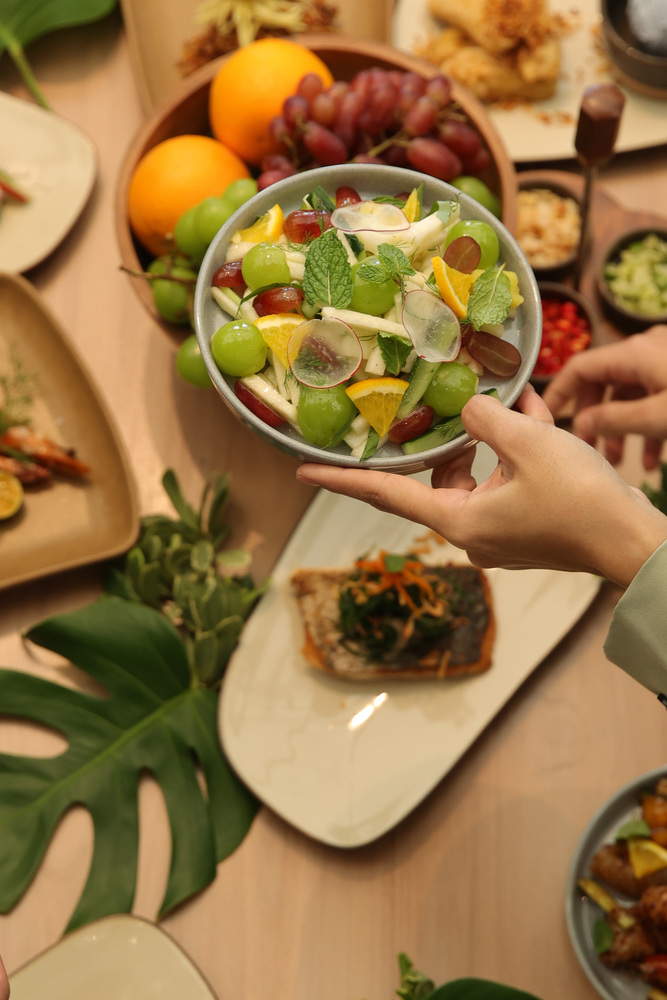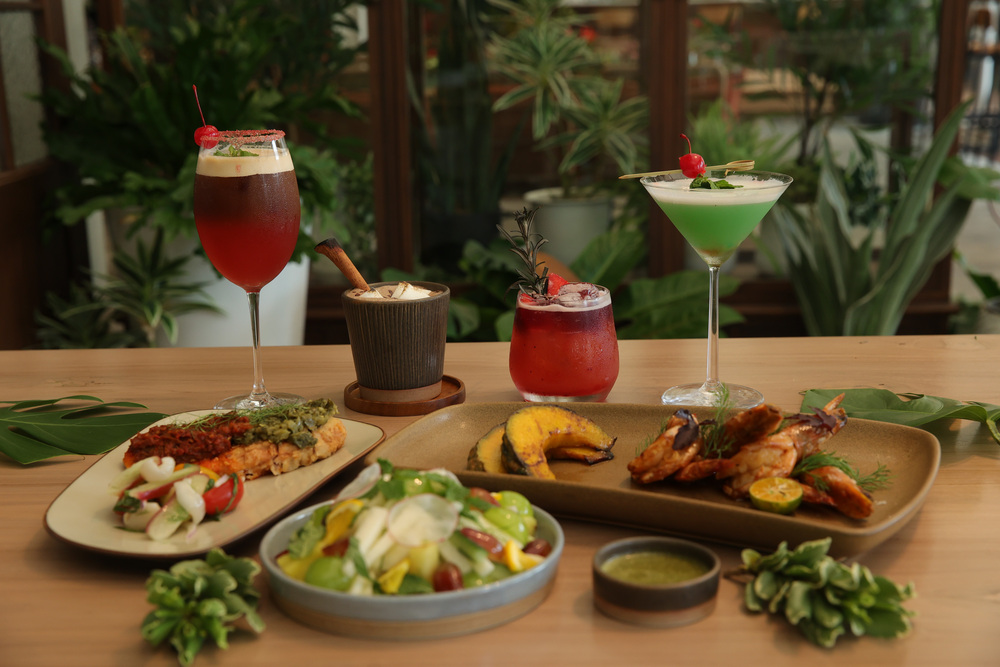 ถัดมาที่ “ป่าดิบชื้น” หรือป่าฝนเขตร้อนที่อุดมไปด้วยผลไม้และสมุนไพรนานาชนิด ถูกตีความผ่านเมนู Ayam Penyet Grilled Chicken ไก่ย่างเนื้อนุ่มราดซอสน้ำพริกสูตรเผ็ดกลมกล่อม เสิร์ฟพร้อมสลัดผลไม้สดอย่างชมพู่, ลิ้นจี่ และส้มมะปิ๊ด ที่มอบรสหวานอมเปรี้ยวชวนสดชื่น และ Rujak Salad สลัดผลไม้ราดน้ำราดสมุนไพรเข้มข้น สะท้อนความเปรี้ยวจัดและหวานมันในแบบเอเชียตะวันออกเฉียงใต้ได้อย่างลงตัว