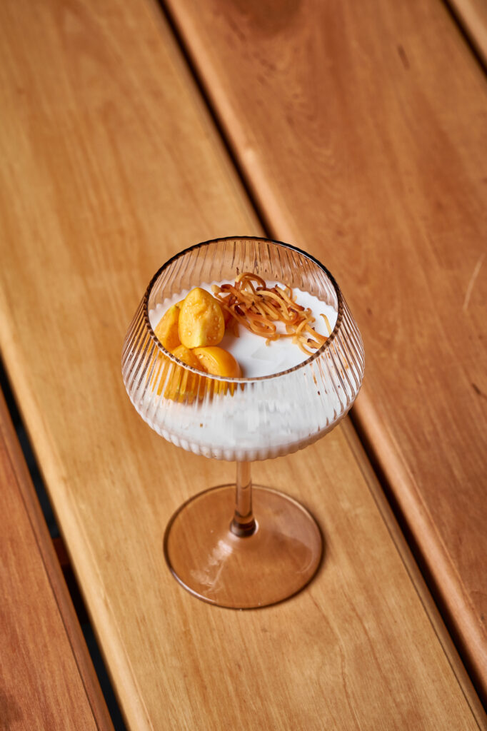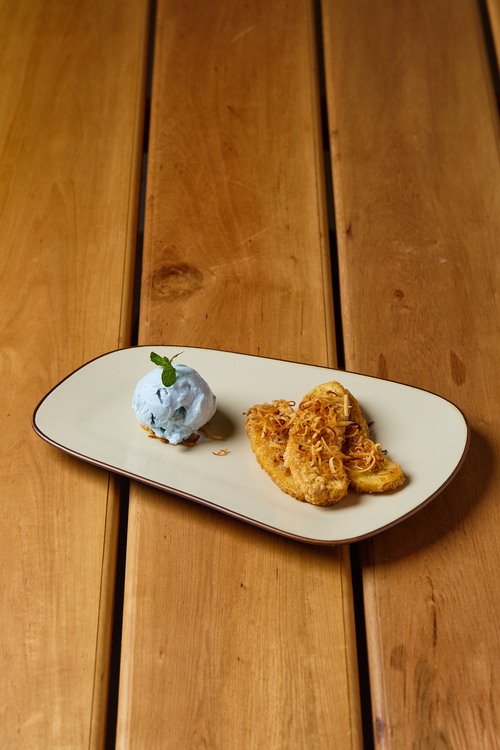 นอกจากเมนูจานหลักที่ชวนประทับใจแล้ว “Gaya” (กายา) ยังรังสรรค์ของหวานแสนละเมียดละไม อาทิ แพนนาคอตต้ามะพร้าว ที่ใช้กะทิสดแทนนม ให้รสสัมผัสเนียนนุ่มและหอมมันแบบธรรมชาติ และ กล้วยทอดไอศกรีมมะพร้าวอ่อนอัญชัน กล้วยทอดสีทองราดซอสคาราเมล เสิร์ฟคู่ไอศกรีมมะพร้าวอ่อนอัญชันรสละมุน สร้างความสมดุลระหว่างความอุ่นและความเย็นได้อย่างลงตัว
