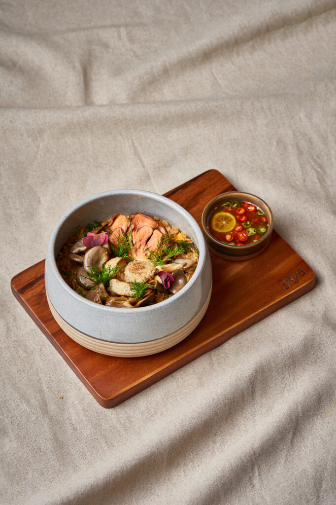 นอกจากรสชาติอาหารที่เป็นเอกลักษณ์แล้ว บรรยากาศของร้าน “Gaya” (กายา) ยังอบอวลไปด้วยความสงบและกลิ่นอายของธรรมชาติ ทุกพื้นที่ออกแบบให้เปิดรับแสงและลมธรรมชาติ เหมาะสำหรับการใช้เวลาคุณภาพกับครอบครัวหรือเพื่อนฝูงในวันหยุดสุดสัปดาห์ และยังเป็นมิตรกับสัตว์เลี้ยงอีกด้วย