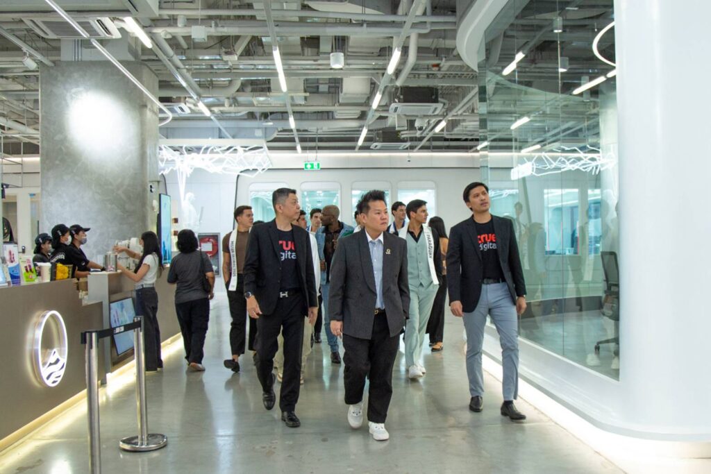 คณะผู้เข้าประกวดนำโดย Alejandro Ortega จากประเทศสเปน ผู้ชนะเลิศอันดับ1 Mister Global 2025 พร้อมคณะผู้ประกวดจากหลากหลายประเทศ ได้เยี่ยมชม บรรยากาศของทรู ดิจิทัล พาร์ค ศูนย์กลางเทคโนโลยีและสตาร์ทอัพที่ใหญ่ที่สุดในอาเซียน และเยี่ยมชม Center of Excellence (CoE)“ระบบนิเวศแห่งนวัตกรรม” ที่เชื่อมโยงโลกชีวภาพ โลกดิจิทัล และโลกข้อมูลไว้ด้วยกัน พร้อมเปิดประสบการณ์สุดล้ำที่ Digital & AI Lab ศูนย์วิจัยและนวัตกรรมและเอไอ โดยทรู ที่ผนึกพลังพันธมิตรระดับโลก มหาวิทยาลัย หน่วยงานรัฐ เอกชน และสตาร์ทอัพ เพื่อร่วมกันขับเคลื่อนประเทศไทยก้าวสู่ เศรษฐกิจดิจิทัลเต็มรูปแบบ Digital & AI Lab แห่งนี้ แบ่งเป็น 5 โซนนวัตกรรมล้ำสมัย ตั้งแต่ Ideation Zone พื้นที่จุดประกายความคิดสร้างสรรค์, Co-Creation Zone สำหรับทำงานร่วมกันแบบ Co-working pods, Training & Learming Zone ยกระดับทักษะบุคลากรทุกระดับผ่านห้องเรียนอัจฉริยะ R&ED Deep Rescarch Zone ที่เปลี่ยนแนวคิด ให้กลาย