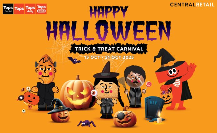 ท็อปส์ ธุรกิจกลุ่มฟู้ด ในเครือเซ็นทรัล รีเทล ร่วมต้อนรับเทศกาลแห่งความหลอนวันฮาโลวีน จัดงาน “Happy Halloween: Trick & Treat Carnival” เนรมิตพื้นที่ให้เป็นดินแดนแห่งความสนุกสุดสยองขวัญ รวบรวมขนมนำเข้าหายากจากทั่วโลกที่มาในแพ็กเกจธีมฮาโลวีน และไอเทมพร็อพสำหรับปาร์ตี้ฮาโลวีนไว้ครบจบในที่เดียว ให้เหล่านักช้อปได้เตรียมพร้อมสำหรับการ Trick & Treat พิเศษกับสินค้า “Only at TOPS” อย่าง Peelerz โถฟักทองยักษ์ฮาโลวีน, SWIZZELS ลูกอมและลูกอมเคี้ยวหนึบกลิ่นรวมผลไม้ พร้อมด้วยขนมอีกหลากหลายแบรนด์ดัง อาทิ ORIHIRO PURUNTO, MEIJI APOLLO, HARIBO, CHUPA CHUPS, BOURBON ฯลฯ พร้อมกันนี้ยังอุปกรณ์ของตกแต่ง สำหรับปาร์ตี้! อาทิ โคมไฟฟักทอง, หน้ากากฮาโลวีลมีไฟ LED, ที่คาดผมสุดเก๋, หมวกฮาโลวีนแม่มด, เครื่องประดับผมฮาโลวีนแบบมีผ้าคลุม หรือเพิ่มความหลอนด้วยเทียน LED ลายหัวกะโหลก และพลาดไม่ได้กับเบเกอร์รี่แสนอร่อยสุดหลอน จาก The Baker อาทิ ขนมปังไส้กรอกมัมมี่, ราสเบอร์มอนสเตอร์เค้ก, สไปเดอร์ช็อกโกแลตซอฟคุกกี้, โกสท์กาลิคแฟลทเบรด, ฮาโลวีนบราวนี่ ฯลฯ