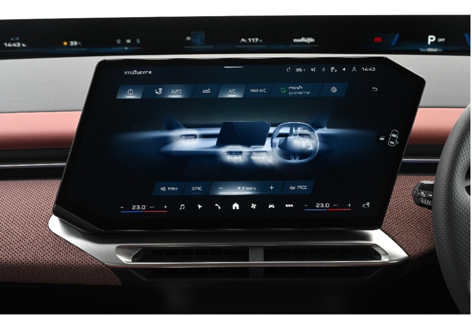 ส่วนหน้าจอแสดงผลกลาง จัดวางในรูปแบบที่ยกตัวออกมาจากแผงคอนโซลหน้า ใช้งานได้สะดวกด้วยตำแหน่งการติดตั้งที่ไม่ไกลจากพวงมาลัย และแสดงภาพได้คมชัดด้วยเทคโนโลยี Matrix Backlight ผู้ขับขี่สามารถเข้าถึงฟังก์ชันต่างๆ ที่เรียกใช้งานเป็นประจำได้ผ่านวิดเจ็ต QuickSelect ที่จัดเรียงเป็นแถวแนวตั้งในฝั่งขวามือ โดยไม่ต้องเข้าเมนูหลายชั้น ส่วนพวงมาลัยแบบมัลติฟังก์ชันดีไซน์ใหม่ ทำหน้าที่เป็นศูนย์รวมปุ่มควบคุม พร้อมรับคำสั่งจากผู้ขับขี่และแจ้งเตือนถึงฟังก์ชันต่างๆ ด้วยผิวสัมผัสของตัวปุ่มเอง ไฟส่องสว่างใต้ปุ่ม และระบบสั่น (haptic feedback) ที่ตอบสนองต่อการสัมผัส ทั้งนี้ ระบบ BMW Panoramic iDrive รับบทบาทเป็นศูนย์กลางที่ช่วยให้ทั้งหน้าจอ องค์ประกอบงานออกแบบภายใน พร้อมด้วยแสงและเสียงภายในห้องโดยสารของบีเอ็มดับเบิลยู iX3 ใหม่ ทำงานร่วมกันเพื่อสร้างประสบการณ์ที่ผสานเป็นหนึ่ง พร้อมรองรับการปรับแต่งให้ตรงตามความต้องการผ่านฟังก์ชัน My Modes