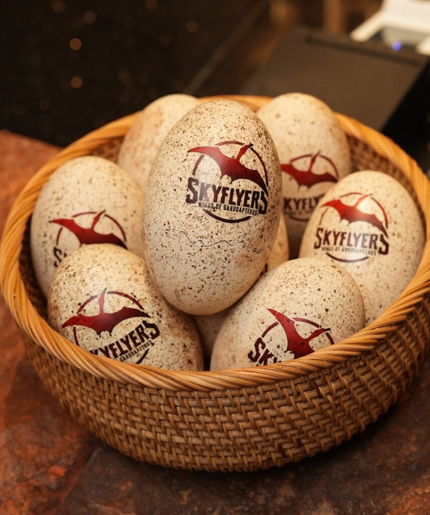 Skyflyers ได้รับแรงบันดาลใจจาก “การูแดปเทอรัส” เทอโรซอร์สกุลพันธุ์ใหม่ของโลกที่นักบรรพชีวินวิทยาไทยค้นพบเมื่อต้นปีที่ผ่านมา ซึ่งหมายถึง “ปีกของครุฑ” โดยครุฑเป็นสัญลักษณ์ของพลังและความกล้าหาญ การค้นพบซากดึกดำบรรพ์ครั้งสำคัญนี้ เป็นจุดเริ่มต้นของการสร้างประสบการณ์ใหม่ให้เกิดขึ้น ซึ่งพื้นที่ต่าง ๆ ของ Skyflyers ถ่ายทอดบรรยากาศยุคดึกดำบรรพ์ อาทิ หน้าผาหินสูงชัน ชั้นดินเก่าแก่ พื้นที่วางไข่ของสัตว์ดึกดำบรรพ์ ผืนป่าที่มีระบบนิเวศคล้ายโอเอซิส ตลอดจนรอยเท้าฟอสซิลที่หลงเหลือ เป็นเรื่องราวของของการเดินทางที่ น่าตื่นตา ปลุกความสนใจให้กับผู้ชมทุกวัย โดยการออกแบบดังกล่าวได้รับการสนับสนุนด้านวิชาการผ่านความร่วมมือกับศูนย์วิจัยและการศึกษาบรรพชีวินวิทยา มหาวิทยาลัยมหาสารคาม สถาบันผู้อยู่เบื้องหลังการค้นพบครั้งสำคัญ นอกจากนี้ความเชื่อมโยงกับครุฑยังเพิ่มมิติทางวัฒนธรรมให้แก่ประสบการณ์นี้ ผ่านมุมมองพาโนรามา 360 องศาบนท้องฟ้า สะท้อนถึงความงดงามของประเทศไทยและความสำคัญของความก้าวหน้าทางวิทยาศาสตร์ครั้งนี้