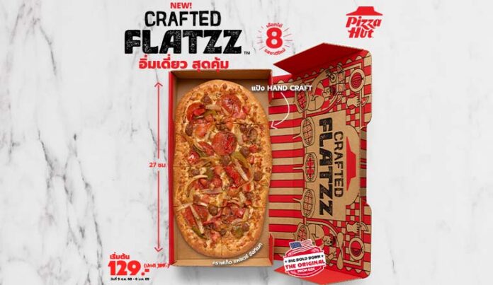 พิซซ่า ฮัท ชวนคุณมาอิ่มเดี่ยว สุดคุ้มกับ Crafted Flatzz ที่ Pizza Hut ทุกสาขาทั่วประเทศ โทร. 1150, เว็บไซต์ www.pizzahut.co.th, Pizza Hut Application, และเดลิเวอรีทุกช่องทาง Grab Food / LINE MAN / Shopee Food / Robinhood