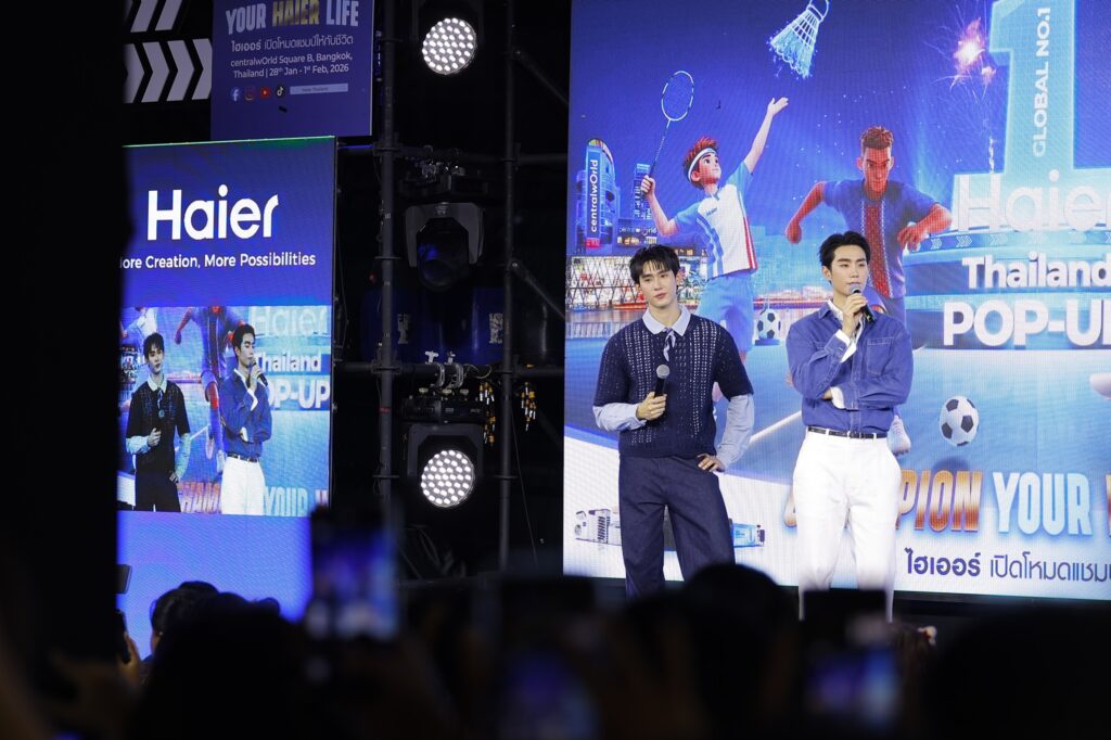 เรียกได้ว่าลานเซ็นทรัลเวิลด์แทบแตกตั้งแต่วินาทีแรกที่สองหนุ่มคู่ซี้ขวัญใจมหาชน ฟอส – จิรัชพงศ์ ศรีแสง และ บุ๊ค – กษิดิ์เดช ปลูกผล ปรากฏตัวกลางงาน Champion Your Haier Life ไฮเออร์ เปิดโหมดแชมป์ให้กับชีวิต บอกเลยว่างานนี้ไม่ใช่แค่หล่อคูณสอง แต่เป็นเคมีพุ่งจนแฟนคลับกรี๊ดสนั่น ทั้งโชว์ร้องเพลงคู่ เล่นเกม และกิจกรรมภายใต้ธีมกีฬาเทนนิสสุดแอคทีฟแบบใกล้ชิดสุด ๆ แถมยังเสิร์ฟโมเมนต์หวานละลายใจไม่มีกั๊ก เรียกเสียงกรี๊ดได้ทุกช็อต ก่อนจะพาแฟน ๆ เปิดประสบการณ์ใกล้ชิดกับนวัตกรรมไลฟ์สไตล์จากไฮเออร์ ที่สะท้อนทั้งดีไซน์ ฟังก์ชัน และการใช้งานที่ตอบโจทย์ชีวิตประจำวันได้อย่างลงตัว ปิดท้ายด้วยบรรยากาศสุดคึกคัก เต็มไปด้วยรอยยิ้ม เสียงเชียร์ และโมเมนต์ประทับใจที่แฟน ๆ ได้ร่วมแชร์ความสนุกไปพร้อมกันตลอดทั้งงาน