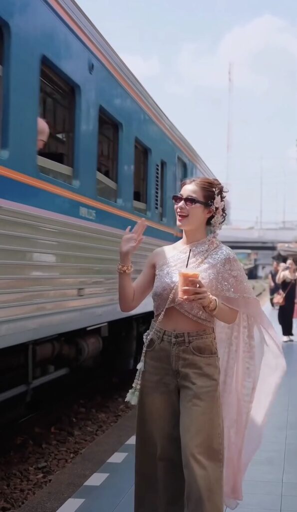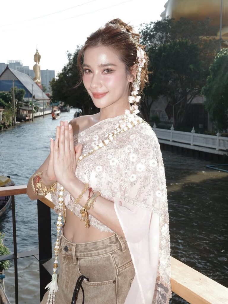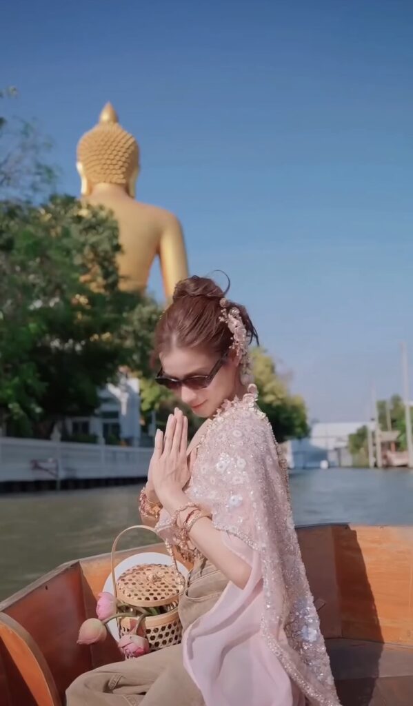 มาช้าแต่มานะ! ‘วิว วรรณรท’ ห่มสไบละมุนกลางกรุง พาเช็กอินแลนด์มาร์กคลาสสิก ‘ตลาดพลู’
