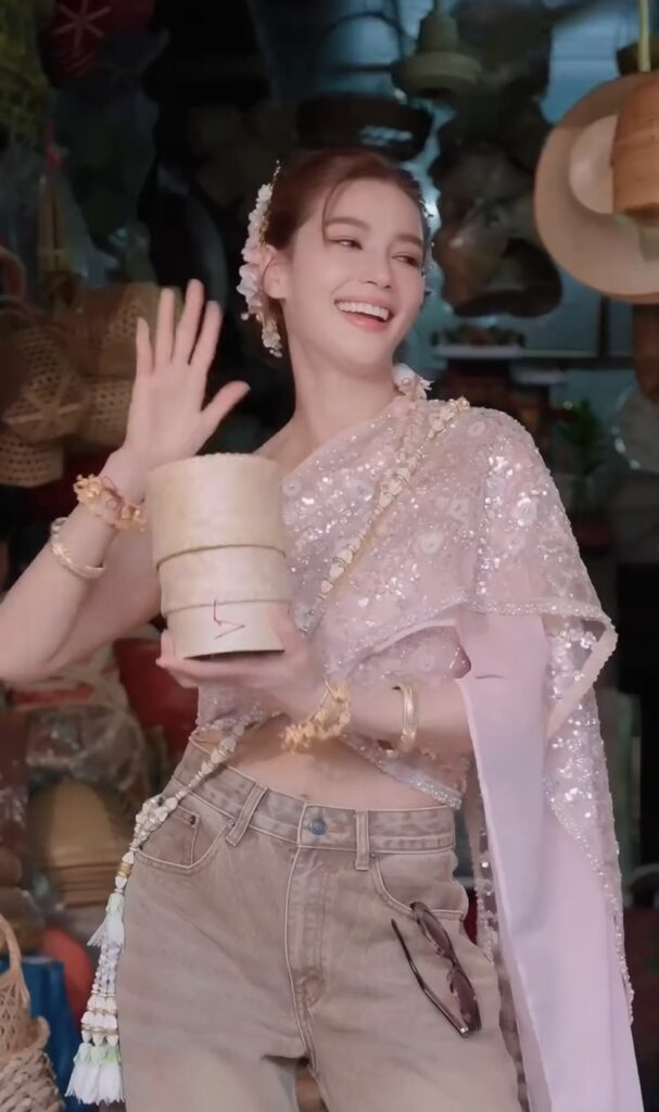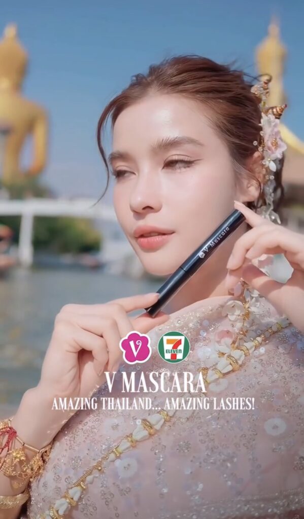 นอกจากนี้ ลุคห่มสไบของวิว ยังกลายเป็นไฮไลต์ที่แฟน ๆ พูดถึง ด้วยการผสมผสานแฟชั่นไทยเข้ากับไลฟ์สไตล์เมืองได้อย่างลงตัว สะท้อนเสน่ห์ความเป็นไทยในมุมใหม่ที่ร่วมสมัยและเข้าถึงง่าย จนหลายคนยกให้เป็นอีกหนึ่งอินสไปเรชันการแต่งตัวเที่ยวกรุง อีกหนึ่งไฮไลต์ที่แฟน ๆ โฟกัสไม่แพ้ลุคการแต่งกาย คือ งานผิวและงานตาของวิว ที่มาในโทนใสธรรมชาติ รับกับแสงแดดกลางวันของย่านเมืองเก่าได้อย่างลงตัว ส่วนที่ทำให้ดวงตาดูโดดเด่นเป็นพิเศษ คือ ขนตางอนยาว เรียงเส้นสวยเป็นธรรมชาติ ซึ่งวิวเลือกใช้ V Mascara มาสคาร่าคู่ใจที่ช่วยเพิ่มมิติให้ดวงตาโดยไม่ทำให้ลุคดูหนักจนเกินไป เหมาะกับการถ่ายภาพกลางแจ้งและการเคลื่อนไหวตลอดวัน ไม่จับตัวเป็นก้อน และยังคงความงอนเด้งแม้ต้องเดินเที่ยว ชิมของอร่อย และเก็บโมเมนต์ตลอดทริป