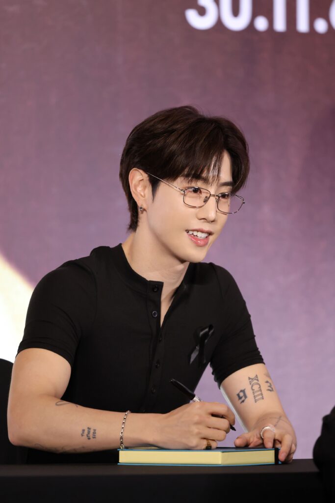 นอกจากนี้ มาร์คยังแชร์เรื่องราวหลายเรื่องให้อากาเซ่หายคิดถึง ไม่ว่าจะเรื่องรอยสักที่ชอบมากที่สุดคือดอกไม้ เพราะเวลาถ่ายรูปออกมาดูดี เป็นดอกไม้เกาหลีเปรียบเสมือนสัญลักษณ์การเริ่มต้นการทำงานที่เกาหลี เรื่องเคล็ดลับหน้าเด็กสำหรับอากาเซ่ไทย “นอนเยอะ ดื่มน้ำ ดูแลผิว” พร้อมยืนยันชื่อไทยสุดอบอุ่นว่า “เรียกผมว่าพี่จ๋าได้เลยครับ” ส่งต่อช่วง Q&A ยิ่งเพิ่มความฮอต เมื่อมาร์คโชว์สกิลภาษาไทยชัดเป๊ะกับประโยค “อากาเซ่เริ่ดเลยละ” ต่อด้วย “หึ…คิดว่าจะหนีพ้นเหรอ เจ้าอากาเซ่ของฉัน” เรียกเสียงกรี๊ดกระหึ่มจากอากาเซ่ ก่อนต่อด้วยแฟนไซน์กับผู้โชคดีแบบตัวต่อตัวและเลือกไอเทมแฟนไซน์มาถ่ายรูปแบบจัดเต็ม ปิดท้ายด้วยกิจกรรม HI-BYE กับแฟน ๆ ผู้โชคดี แถมยังมีการถ่ายภาพโพลารอยด์ 1:1 กับท็อปสเปนเดอร์อย่างใกล้ชิดอีกด้วย งานนี้อากาเซ่ไทยได้รับโมเมนต์พิเศษกลับบ้านไปเต็มหัวใจ สมการรอคอยการกลับมาของมาร์ค ต้วนอย่างแท้จริง