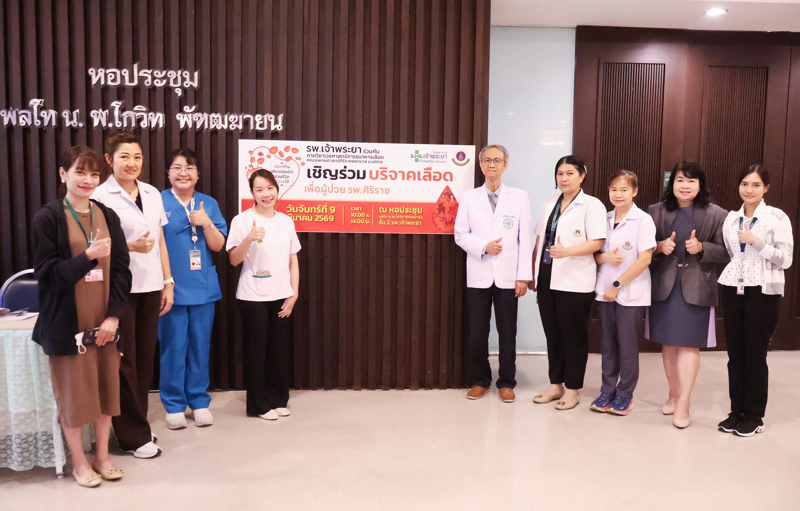 โรงพยาบาลเจ้าพระยา นำโดย นพ.สมเกียรติ คูอมรพัฒนะ ผู้อำนวยการโรงพยาบาล ให้การต้อนรับผู้แทนแพทย์จากภาควิชาเวชศาสตร์การธนาคารเลือด คณะแพทยศาสตร์ศิริราชพยาบาล พร้อมทีมเจ้าหน้าที่หน่วยบริการเคลื่อนที่ ธนาคารเลือด โรงพยาบาลศิริราช ในโอกาสร่วมกันจัดกิจกรรม “บริจาคเลือดเพื่อผู้ป่วย รพ.ศิริราช” ครั้งที่ 1/2569 เพื่อสำรองเลือดสำหรับรักษาผู้ป่วยที่ต้องการเลือดอย่างต่อเนื่อง โดยมีประชาชนและบุคลากรให้ความสนใจเข้าร่วมบริจาคเป็นจำนวนมาก สะท้อนถึงพลังแห่งการแบ่งปันและความร่วมมือของสังคมในการช่วยเหลือเพื่อนมนุษย์
