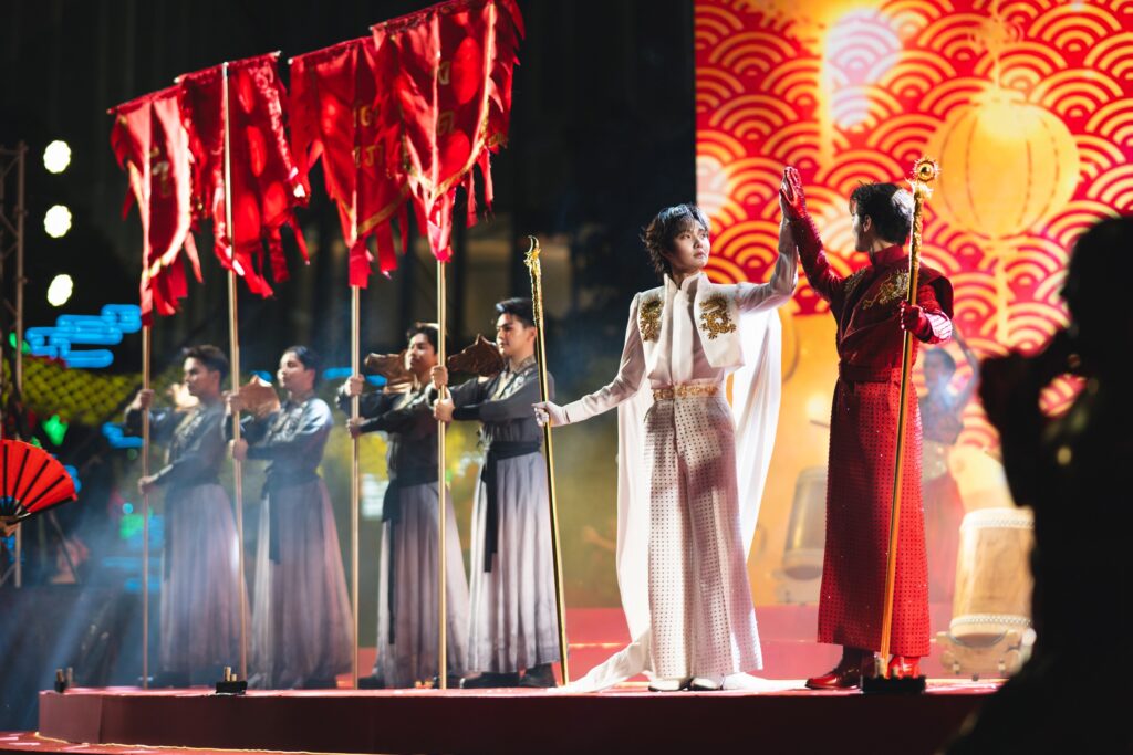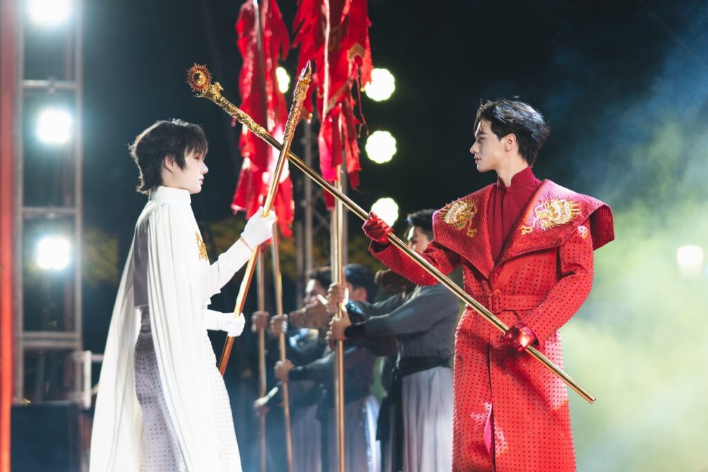 - องก์ 4 “เบิกศักราชเฉลิมฉลอง”: “เทพสุริยัน-เทพจันทรา” กลับสู่เวทีอีกครั้ง พร้อมผืนผ้าแดงและวงแหวนสีทองอันศักดิ์สิทธิ์ ผสานกับการแสดงระบำโคมแดง กายกรรม และการ ตีกลอง ตอกย้ำพลังแห่งการเริ่มต้นใหม่