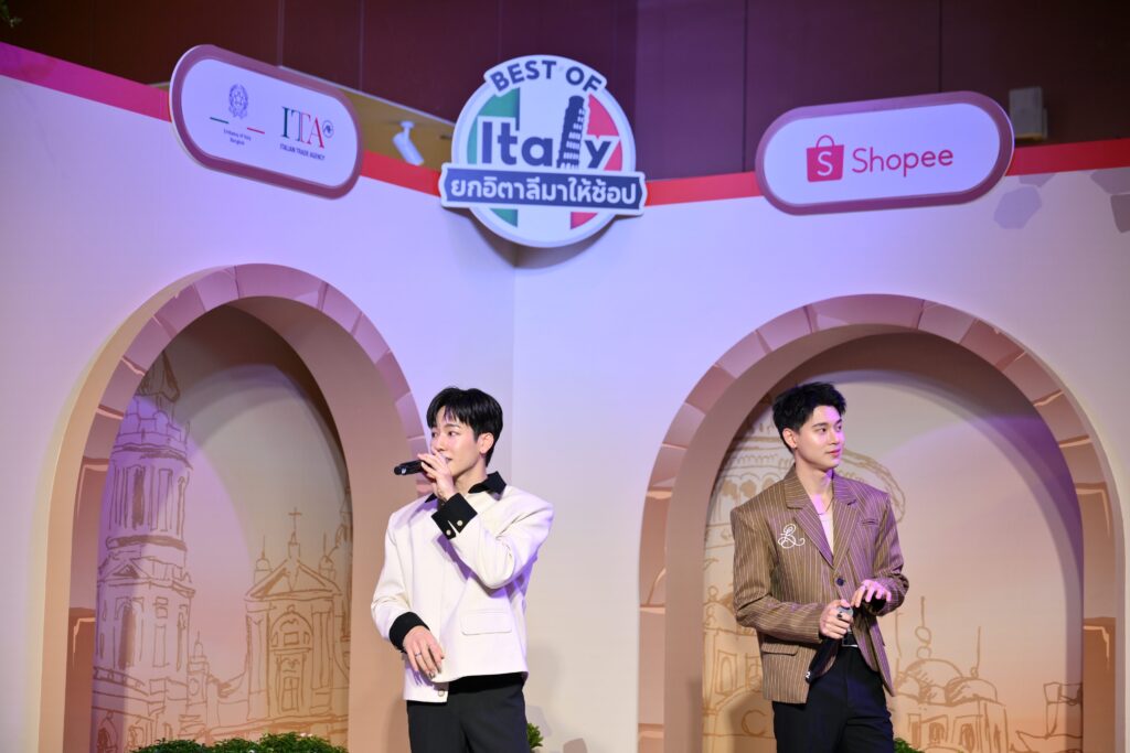 สำหรับบรรยากาศภายในงานกิจกรรม Best of Italy: All in One at Shopee – ยกอิตาลีมาให้ช้อป ครบคุ้มที่ Shopee ที่จัดขึ้นเมื่อวันที่ 29 – 30 พฤศจิกายน 2568 ณ พาราไดซ์ ฮอลล์ ชั้น G ดุสิต เซ็นทรัล พาร์ค เต็มอิ่มไปด้วยความสุขสนุกสนานอย่างครบรส ประเดิมวันแรกด้วยศิลปินหนุ่มคู่ซี้สุดฮอต หยิ่น อานันท์ และ วอร์ วนรัตน์ ที่ทั้งคู่ต่างเป็นเป็นคนที่หลงใหลในงานศิลปะตัวจริงมาร่วมชมหลากหลายสินค้าพรีเมียมแบรนด์ชั้นนำ Made in Italy ในหลากหลายหมวดหมู่ อาทิ อาหารและเครื่องดื่ม ความงาม แฟชั่น ของใช้ในบ้าน และสินค้าไลฟ์สไตล์ ทั้งสองหนุ่ม หยิ่น-วอร์ ยังมาเสิร์ฟความสุขอย่างสนุกสนาน ด้วยการร่วมสวมบทบาทเป็นเชฟมือใหม่ทำอาหารเมนูอิตาเลียน ที่บอกเลยว่าถูกอกถูกใจทั้งสองหนุ่มเป็นอย่างมาก เพราะได้ลองทำเมนูสไตล์อิตาเลียนแท้ โดยใช้วัตถุดิบ เครื่องปรุง เครื่องครัว จากแบรนด์อิตาลีที่มาวางจำหน่ายทั้งในงาน และสามารถช้อปออนไลน์ในช้อปปี้ เรียกได้ว่าทั้งสองหนุ่มได้ซึมซับกับวัฒนธรรมและสัมผัสกลิ่นอายความเป็นอิตาเลียนอย่างตื่นตาตื่นใจ ก่อนจะปิดท้ายด้วยการมอบความสุขโดยทั้งสองหนุ่มมาโชว์มินิคอนเสิร์ และวันถัดมายัง ก็ยังเต็มไปด้วยความสนุกโดยศิลปินวง ลิปตา ที่มาแสดงมินิคอนเสิร์ตมอบความบันเทิงอย่าง เต็มอรรถรสให้ผู้เข้าร่วมงานได้ช้อปปิ้งหลากหลายสินค้าชั้นนำแบรนด์จากแบรนด์อิตาลีท่ามกลางเพลงฮิตแบบฟินๆ