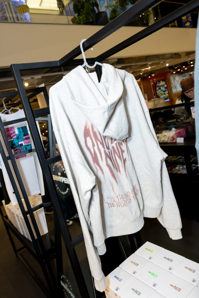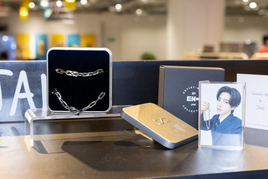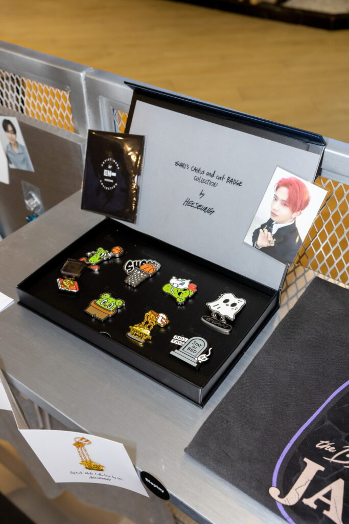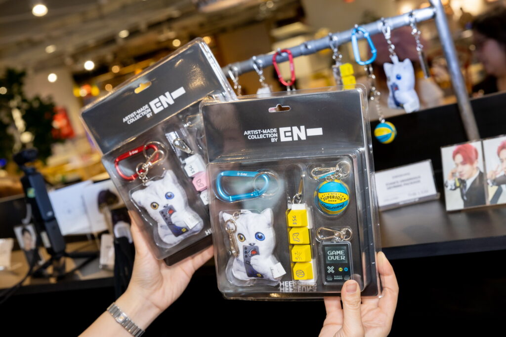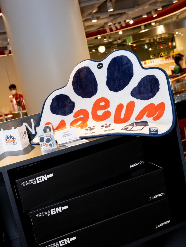 พบกับไฮไลต์ไอเท็มสุดพิเศษ ที่เต็มไปด้วยกลิ่นอายของแต่ละสมาชิก ENHYPEN ไม่ว่าจะเป็น เสื้อและกางเกง EVER-SOFT PAJAMAS WITH MAEUM, พรม COZY RUG WITH MAEUM โดย JUNGWON, พวงกุญแจและห่วง EVAN’S UNSERIOUS KEYRING PACKAGE, EVAN’S CACTUS AND CAT BADGE COLLECTION โดย HEESEUNG, JAY’S FAMILY T-SHIRT, ผ้ากันเปื้อน WILL APRON โดย JAY, CONNECT-NECKLACE, COCO-SHELL TUMBLER โดย JAKE, MINI-ME FIGURE SET, 109 ZIP-UP HOODIE โดย SUNGHOON, FUZZY BEAR BEANIE, SHION ON THE DARK MOON LAMP โดย SUNOO, ‘MADE’ MA-1 JACKET, CUSTOM CANDLE โดย NI-KI พร้อมมุมถ่ายภาพสุดฟินให้แฟนๆ ได้เก็บโมเมนต์ความประทับใจอย่างใกล้ชิดในทุกโซน