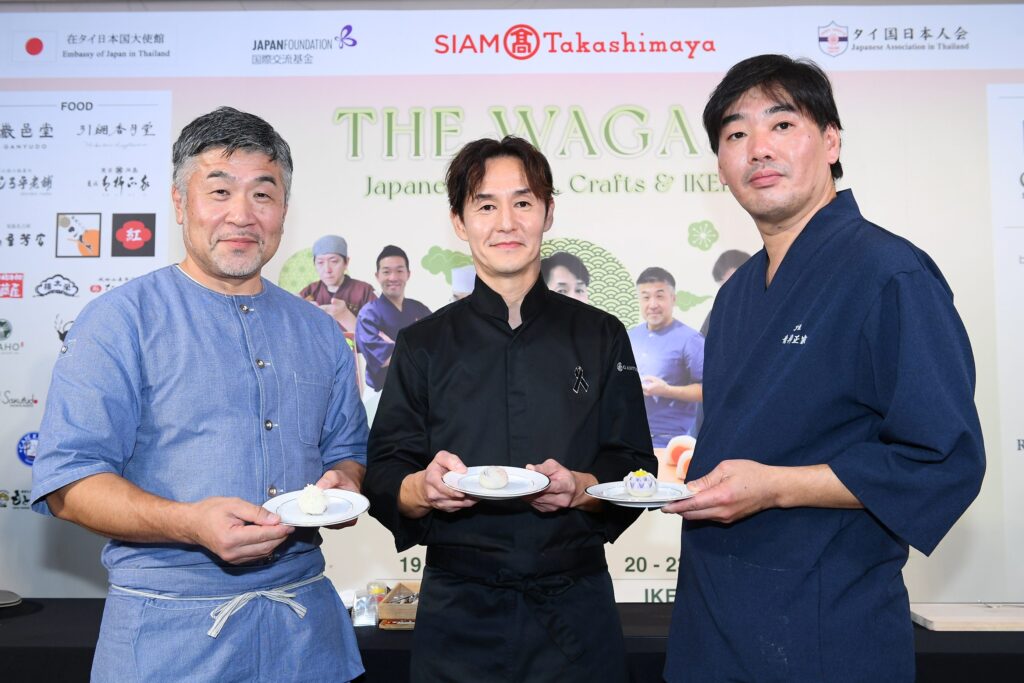 สำหรับบรรยากาศในงาน “THE WAGASHI Japanese Foods, Crafts & IKEBANA”  เริ่มจากการมอบความพิเศษ ให้กับผู้ที่หลงใหลในเสน่ห์ของขนมหวาน ด้วยการนำขนมสไตล์ญี่ปุ่นดั้งเดิมขนานแท้ จากร้านขนมชื่อดังทั่วประเทศญี่ปุ่นมาให้ช็อปท่ามกลางกลิ่นอายของวัฒนธรรมญี่ปุ่นสุดอบอุ่น ระหว่างวันนี้ถึง 30 พฤศจิกายน 2568 ที่ชั้น G และ ชั้น 4 สยาม ทาคาชิมายะ ณ ไอคอนสยาม  สุดเอ็กซ์คูลซีฟ!! กับการลิ้มลองความอร่อยกับขนมต้นตำรับสไตล์ดั้งเดิม “WAGASHI” (วากาชิ)   ขนานแท้!!   ซึ่งได้รับการจดทะเบียนศิลปะและขั้นตอนการทำขนมเป็นมรดกภูมิปัญญาทางวัฒนธรรม จากการรังสรรค์เมนูสุดครีเอท   โดย 7 เชฟ จาก  7 ร้านดัง ต้นตำรับขนานแท้จากประเทศญี่ปุ่นเพื่อวาระครบรอบ 7 ปี เท่านั้น!!  นำโดย ฮิโรโมริ อุชิดะ จากร้าน “กันยูโด จังหวัดชิสึโอกะ, โนโบรุ  อิวาสะ จากร้าน “ชิโรเฮ โรโฮ” จังหวัด  ชิกะ, โยชิทาโร่ ฮานาอิ จากร้าน “คาเมยะ โยชิฮิโระ” จังหวัดไอจิ, ยาสึฮิโระ ฮิคิอามิ จากร้าน “ฮิคิอามิ โคเกทสึโด” จังหวัดโทยามะ, โทโมคาสึ  สึนากะ จากร้าน “อาโอยากิ เซอิเกะ” จังหวัดโตเกียว, โนบุฮารุ โอคาโมโตะ จากร้าน “ยูเมะกะชิโคโบ  โคโทะโยะ” จังหวัดมิเอะ, มาซาอากิ มิยะเกะ จากร้าน  “เบะนิยะ มิยะเกะ” จังหวัดโทจิกิ”
