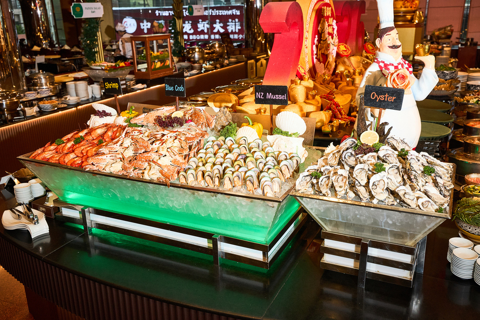 โรงแรม ดิ เอมเมอรัลด์ จัดเมนูพิเศษให้ทุกท่านที่มาทานบุฟเฟต์นานาชาติมื้อเย็นได้ชิม “ปลาทูน่าครีบน้ำเงิน” (Bluefin Tuna) หรือที่รู้จักกันในชื่อ “Hon-Maguro” ซึ่งเป็นปลาทูน่าสายพันธุ์ที่มีราคาสูงที่สุด เป็นปลาทะเลเลือดอุ่นที่พบในน่านน้ำเขตอบอุ่นและเขตร้อนทั่วโลก คุณภาพดีทั้งในด้านรสชาติ และเนื้อสัมผัสที่นุ่ม ทานได้ไม่อั้นเป็นไฮไลท์ที่ภูมิใจนำเสนอ บริการรวมใน “บุฟเฟต์นานาชาติที่มีซีฟู้ดและซูชิพรีเมียม” ทั้งหอยนางรม ปูม้า หอยหวาน กุ้งแม่น้ำ หอยแมลงภู่นิวซีแลนด์ ฯลฯ พร้อมน้ำจิ้มสูตรเด็ด รสแซบ มุมข้าวต้มกุ๊ยที่มีเครื่องเคียงกับข้าวมากมายให้เลือกอิ่มอร่อย มุม Carving Station 7 วัน 7 เมนู