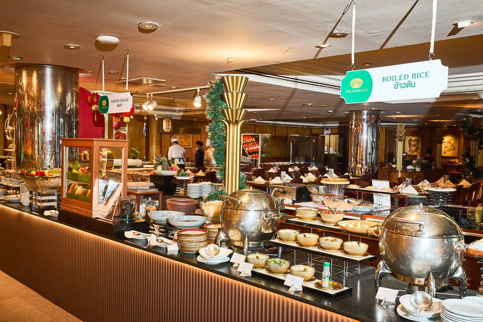 ห้ามพลาดกับ ขาหมูสูตรดิเอมเมอรัลด์ ข้าวต้มปลากะพง มุมส้มตำและยำต่างๆ ซุปเห็ดทรัฟเฟิล พาสต้า ซูชิฟัวกราส์ วากิว ปลาไหลญี่ปุ่น แซลมอน นอกจากนี้ยังมี เทปปันยากิ กุ้งแม่น้ำเผา เทมปุระ ฯลฯ รวมเครื่องดื่มน้ำอัดลม ชา-กาแฟ ของหวานทั้งไทย เบเกอรี่ ไอศกรีม และผลไม้ตามฤดูกาล ระหว่างเวลา 18.00 – 22.00 น.ทุกวัน รับประกันความคุ้มค่า ในราคาท่านละ 2,001 บาทถ้วน โปรโมชั่นพิเศษ!! เหลือเพียงท่านละ 1,529 บาทถ้วน เท่านั้น