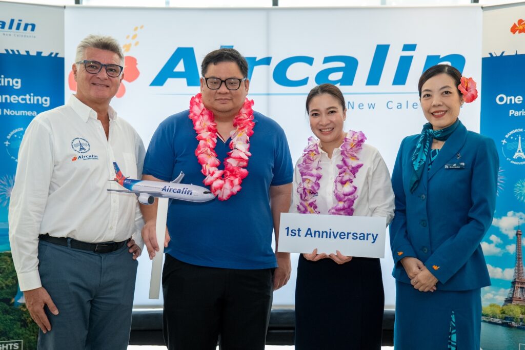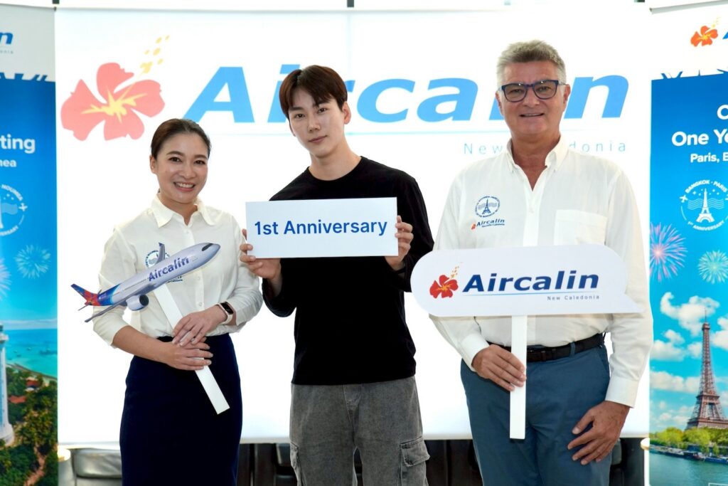 สายการบินแอร์คาลิน (Aircalin) สายการบินประจำชาตินิวแคลิโดเนีย ฉลองความสำเร็จครบรอบ 1 ปีของการเปิดเส้นทางบิน นูเมอา ประเทศนิวแคลิโดเนีย สู่กรุงเทพมหานคร ประเทศไทย และกรุงปารีส ประเทศฝรั่งเศส ด้วยตัวเลขผู้โดยสารร่วมกว่า 60,000 คน พร้อมจัดงานขอบคุณบริษัทเอเจนซี่ท่องเที่ยวและพันธมิตรในไทย ตอกย้ำความเชื่อมั่นว่าเส้นทางเชิงกลยุทธ์ที่เชื่อมต่อ 3 ภูมิภาคนี้ จะทำให้กรุงเทพฯ เป็นศูนย์กลางสำคัญระหว่างยุโรปและแปซิฟิกใต้ นอกจากนี้สายการบินฯ ยังได้เพิ่มความถี่เที่ยวบินเป็นสัปดาห์ละ 3 เที่ยวบิน รองรับดีมานด์ผู้โดยสารที่เติบโตอย่างต่อเนื่อง