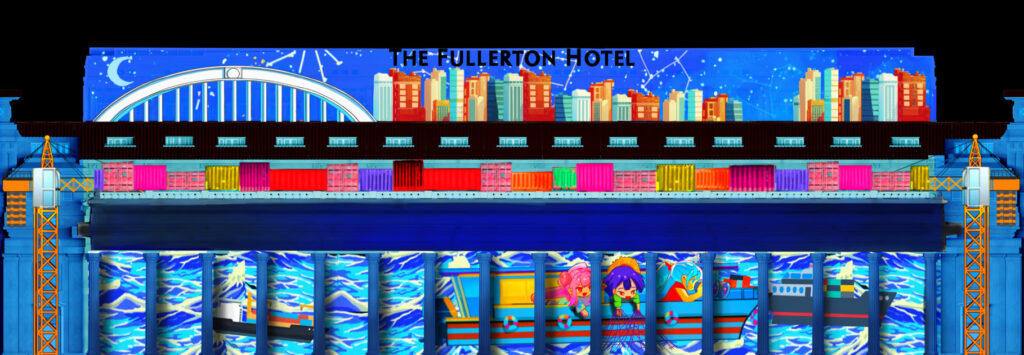 ตั้งแต่วันที่ 26 ถึง 31 ธันวาคม 2568 ด้านหน้าอาคารของโรงแรม The Fullerton Hotel Singapore จะถูกเนรมิตให้กลายเป็นผืนผ้าใบแห่งความสร้างสรรค์อันตระการตา ถ่ายทอดผลงานศิลปะที่สร้างสรรค์ขึ้นเป็นพิเศษจำนวน 3 ชิ้น ควบคู่กับผลงานศิลปะดัดแปลงอีกห้าชิ้น เพื่อเป็นบทส่งท้ายอย่างงดงามของการเฉลิมฉลอง SG60 ผลงานศิลปะ 3 ชิ้นที่เคยจัดแสดงในงาน Singapore National Day Parade (NDP 2025) จะกลับมาจัดแสดงอีกครั้งในครั้งนี้ พาผู้ชมออกเดินทางผ่านเรื่องราวอันมีชีวิตชีวาของสิงคโปร์ ตั้งแต่อดีต ปัจจุบัน จนถึงอนาคต พร้อมเฉลิมฉลองวัฒนธรรม ชุมชน และความเป็นหนึ่งเดียวของชาติการแสดงแสงสีจะจัดขึ้นทุกคืน ตั้งแต่เวลา 20.00–22.30 น. สาดแสงสว่างบนอาคารประวัติศาสตร์อันเป็นเอกลักษณ์ ถ่ายทอดแนวคิดและงานออกแบบอันงดงามให้มีชีวิตชีวา