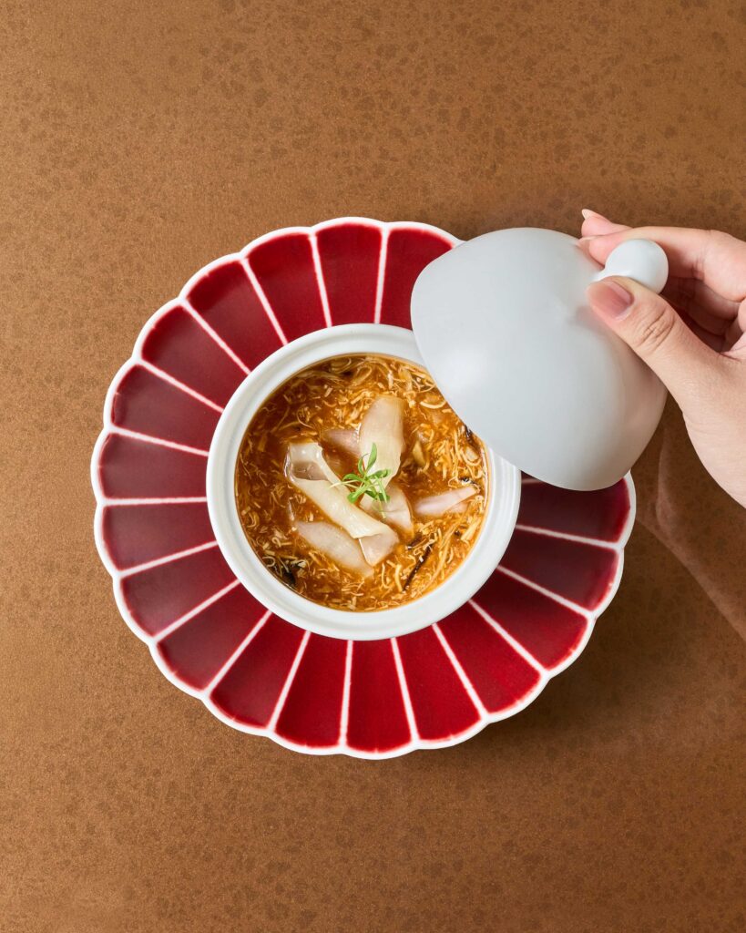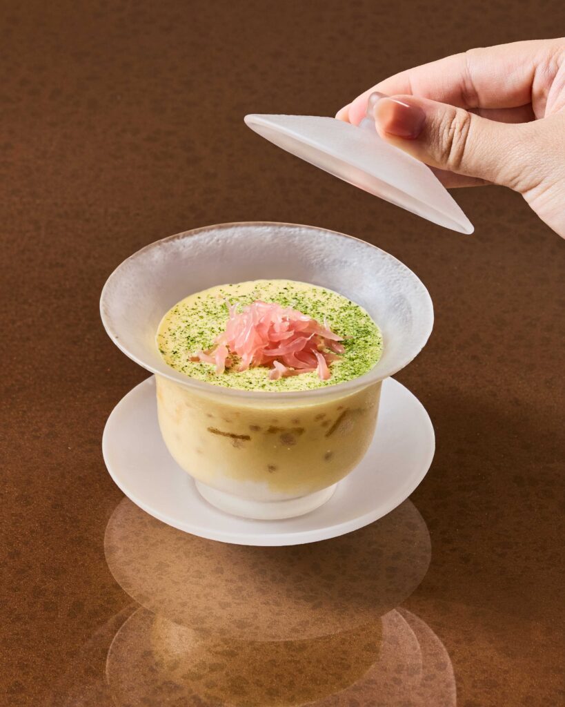 เริ่มต้นด้วยการต้อนรับอันอบอุ่นด้วยสปาร์คกลิ้งไวน์ 1 แก้ว ก่อนเปิดประสบการณ์การเดินทางแห่งรสชาติด้วยเมนูเรียกน้ำย่อยแบบผสมผสาน ทั้งเมนูร้อนและเย็น อาทิ กุ้งหวานดองสไตล์แต้จิ๋ว ไข่ดองรมควันกับไข่ปลาคาเวียร์ และ ขนมปังหน้ากุ้งหอมกรุ่น ตามด้วย ซุปเสฉวนกระเพาะปลาและเนื้อปู