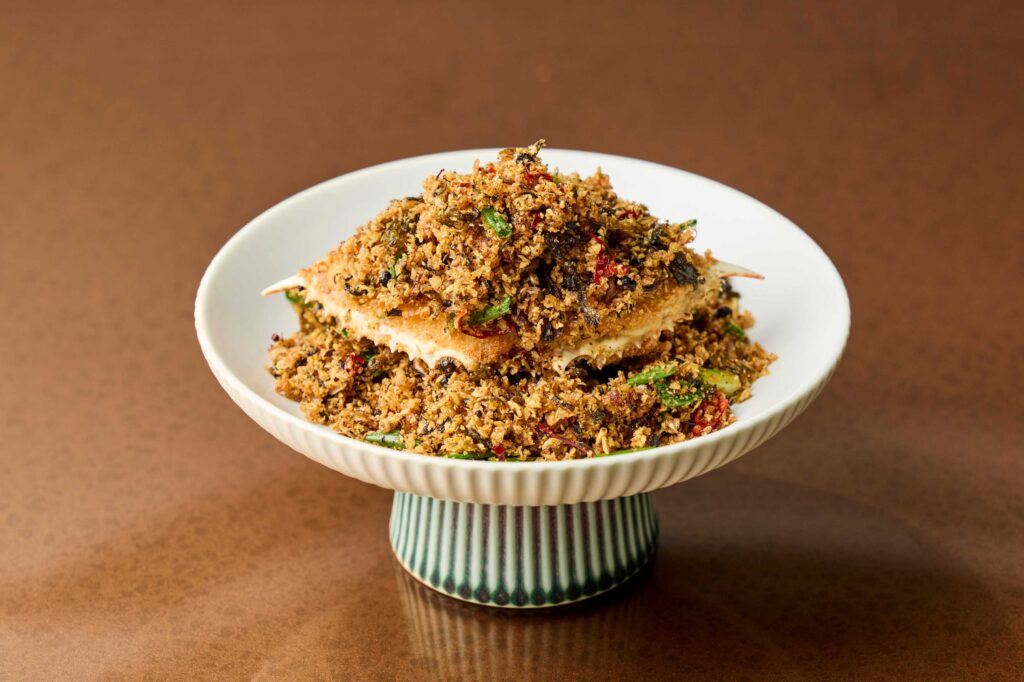ความอร่อยดำเนินต่อเนื่องด้วยเมนูเลิศรสจากเนื้อสัตว์และอาหารทะเลชั้นเยี่ยม อาทิ หมูดำไอเบริโก้ย่างซอสฮ่องกง ปูจ๋าผัดใบหนำเลี๊ยบและกระเทียมต้นตำรับร้านเคย์ กุ้งแม่น้ำผัดพริกเสฉวน และ นกพิราบทอดกรอบ เสิร์ฟคู่กับ ถั่วแขกผัดใบหนำเลี๊ยบและหมูสับ และ ข้าวเหนียวเนื้อปูห่อใบบัว หอมกรุ่น