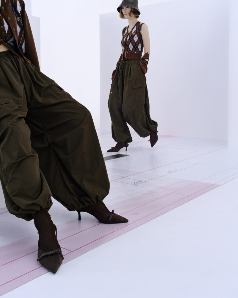 ต่อด้วยSNIDEL (สไนเดล) สร้างสรรค์ความสมดุลใหม่แห่งฤดูใบไม้ร่วง 2025 ภายใต้คอนเซ็ปต์ ‘Playful Contrast’ ที่นำ “Street” และ “Formal” มาหลอมรวมกันอย่างมีสไตล์และเป็นอิสระ โดยไม่ยึดติดในกรอบใดกรอบหนึ่ง ลายตาราง (Check Pattern) ที่นุ่มนวล และผ้าพลิ้วเบาให้สัมผัสสบายช่วยขับรูปร่างให้ดูโดดเด่น มีการผสมผสานความคลาสสิก เข้ากับกลิ่นอายสตรีตในแบบร่วมสมัย ความหวาน ความแข็งแกร่ง และความเป็นเทรนด์ถูกรวมกันอย่างกลมกลืน ผ้าที่ให้ความรู้สึกวินเทจและโทนสีอ่อนอย่าง เขียวมินต์, ม่วงไลแลค, และครีม สะท้อนตัวตนของหญิงสาวยุคใหม่ที่มีความมั่นใจแต่ยังคงความอ่อนโยนในตัวเอง