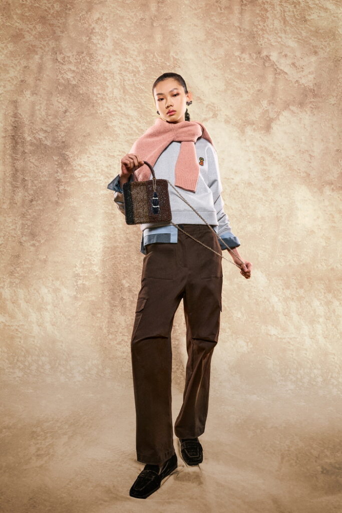 ปิดท้ายด้วยANTEPRIMA / WIREBAG (แอนทิพรีม่า ไวร์แบค) นำแรงบันดาลใจจากผลงานศิลปะของ Izumi Kato ที่สะท้อนประเด็นของความเป็นรูปธรรมและนามธรรมที่ดำเนินไปพร้อมกัน มาตีความความ “นามธรรม” ให้กลายเป็นแฟชั่นที่ใช้ได้จริง ดีไซน์โดดเด่นด้วยรูปทรงที่เล่นสนุก เส้นสาย และพาเลตสีสดเข้มที่สื่อถึงความลึกซึ้งผ่านดีไซน์ที่จินตนาการสูง มีการผสมผสานโครงร่างและรายละเอียดที่เบลอเส้นแบ่งระหว่าง “งานศิลป์” และ “แฟชั่น” ให้กลายเป็นอัตลักษณ์ใหม่ที่ดึงดูดสายตาและร่วมสมัยอย่างลงตัว