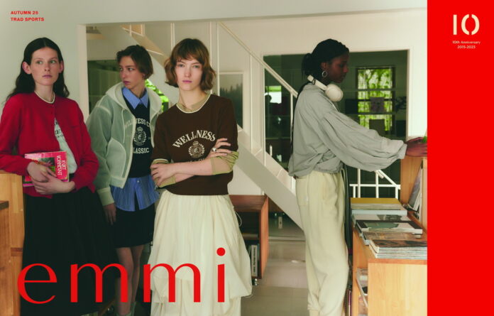 emmi (เอมมี่) ในโอกาสครบรอบ 10 ปี emmi สร้างสรรค์คอลเลกชันฤดูใบไม้ร่วง 2025 ด้วยการผสมผสานระหว่าง “Trad × Sports” โดยนำสไตล์ ‘American Trad’ ซึ่งเป็นแฟชั่นคลาสสิกที่ดูรีแล็กซ์จากยุค 1900s มาผสานเข้ากับแนวสปอร์ตที่มีฟังก์ชันและความคล่องตัวสูง เกิดเป็น “Sporty Trad Style” ที่เป็นเอกลักษณ์ของ emmi ดีไซน์โดดเด่นด้วยกลิ่นอายคลาสสิกที่มาพร้อมโทนสปอร์ตแบบมินิมอลที่สวมใส่ได้จริงในชีวิตประจำวัน มีการปรับสัดส่วนและดีเทลให้มีความยืดหยุ่นมากขึ้น เช่น การเพิ่มขอบยางยืดที่เอว เพื่อให้เคลื่อนไหวสะดวก แต่ยังคงความสง่างามตามแบบฉบับ ‘Trad’ เอาไว้ได้อย่างลงตัว