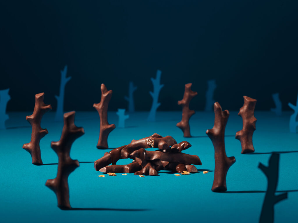 ช็อกโกแลตรูปทรงต้นไม้ที่ได้แรงบันดาลใจมาจากผลงานแกะสลักไม้ของศิลปินชื่อดัง คะซุโยชิ โอทานิ โดยตัวขนมโดดเด่นด้วยเนื้อสัมผัสที่หลากหลายอย่าง แป้งเครปกรอบบดละเอียดและอัลมอนด์