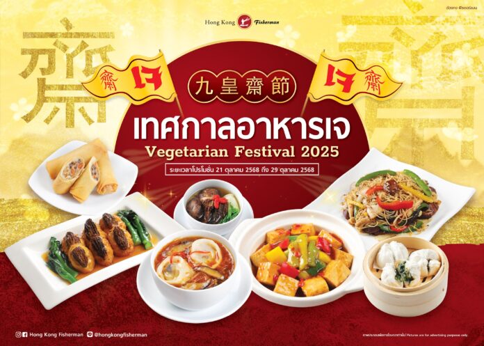 “ฮ่องกง ฟิชเชอร์แมน” ชวนอิ่มบุญรับเทศกาลกินเจ 2568 กับเมนูเจต้นตำรับฮ่องกงกว่า 20 รายการ ระหว่างวันที่ 21 – 29 ตุลาคม 2568 ณ ล็อบบี้ อาคาร 12 อิมแพ็ค เมืองทองธานี