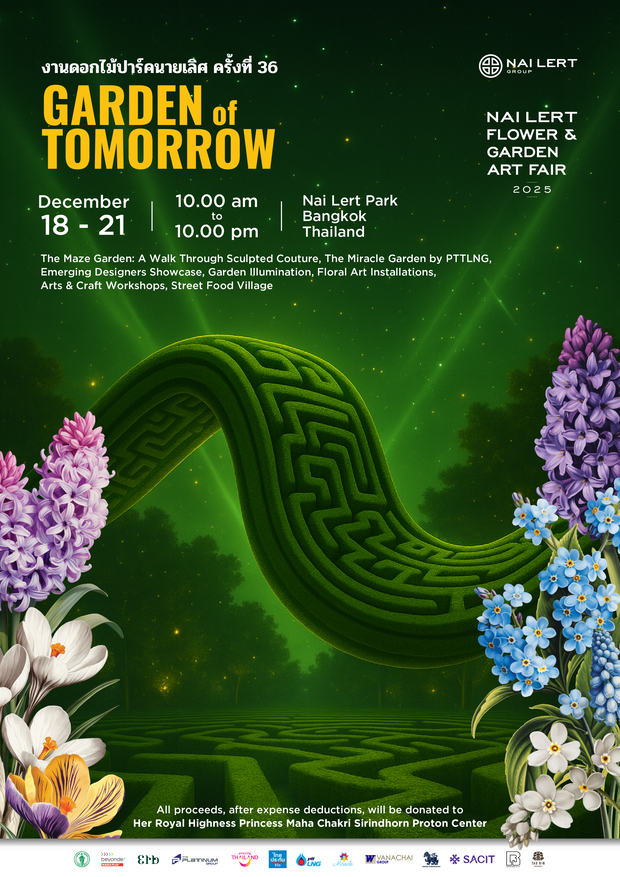 ในการนี้ สมาคมปาร์คนายเลิศ เตรียมจัดงานเทศกาลดอกไม้และศิลปะที่ยิ่งใหญ่แห่งปี “งานดอกไม้ปาร์คนายเลิศ ครั้งที่ 36” (The 36th Nai Lert Flower & Garden Art Fair 2025) ระหว่างวันที่ 18–21 ธันวาคม 2568 เวลา 10.00–22.00 น. ณ ปาร์คนายเลิศ ซอยสมคิด ถนนเพลินจิต กรุงเทพฯ ภายใต้แนวคิดหลัก “Garden of Tomorrow” ที่จะพาผู้เข้าชมสัมผัสประสบการณ์สวนแห่งอนาคตซึ่งผสานความงามของธรรมชาติ ศิลปะร่วมสมัย และนวัตกรรมเข้าไว้ด้วยกันอย่างกลมกลืน และเพื่อแสดงความมุ่งมั่นในการช่วยเหลือสังคมตามปณิธานของ ท่านผู้หญิงเลอศักดิ์ สมบัติศิริ ผู้ริเริ่มงานดอกไม้ปาร์คนายเลิศ