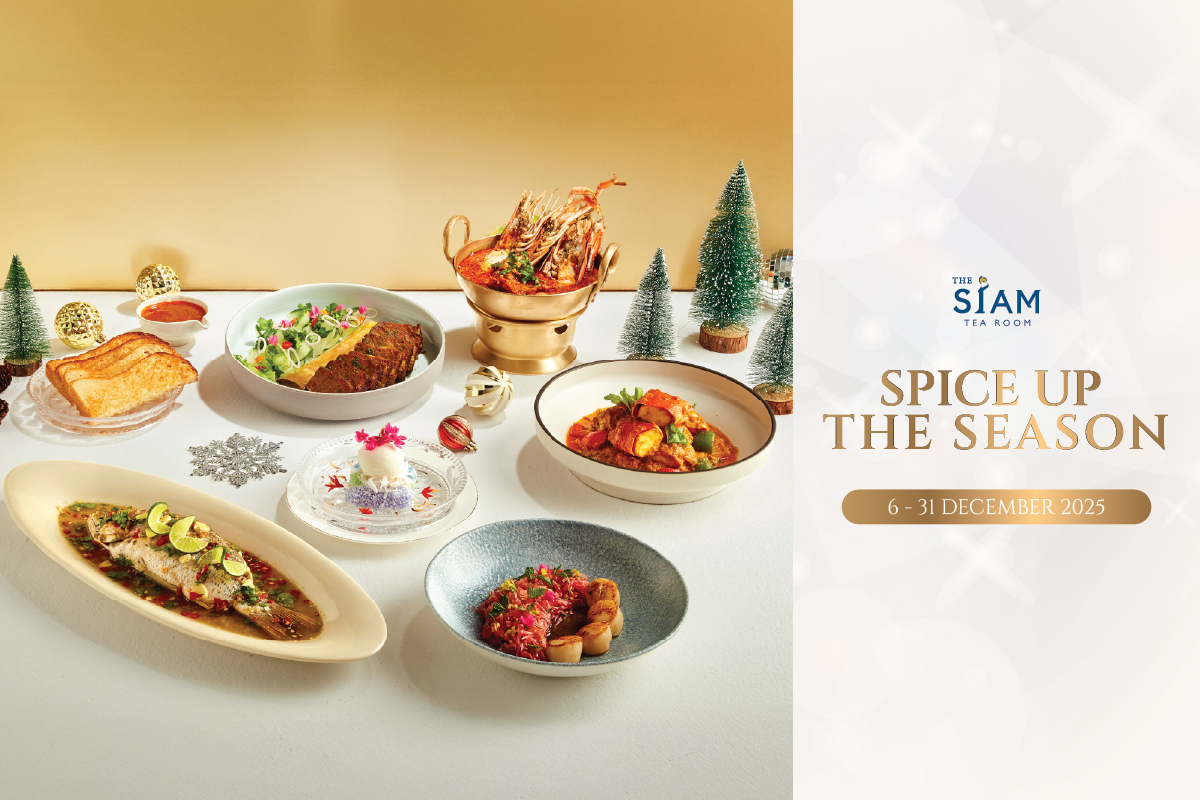 เดอะ สยาม ที รูมท์  ห้องอาหารไทยรสแท้และคาเฟ่สุดอบอุ่น ณ โรงแรมแบงค็อก แมริออท มาร์คีส์ ควีนส์ปาร์ค เชิญชวนทุกท่านมา Spice Up The Season” เติมความอร่อยให้ช่วงเทศกาลปลายปีนี้ด้วยเมนูพิเศษสุดเข้มข้น ที่จะพาคุณออกเดินทางสู่เรื่องราวมรดกอาหารไทยผ่านรสชาติและกลิ่นอายสมุนไพรอันเป็นเอกลักษณ์