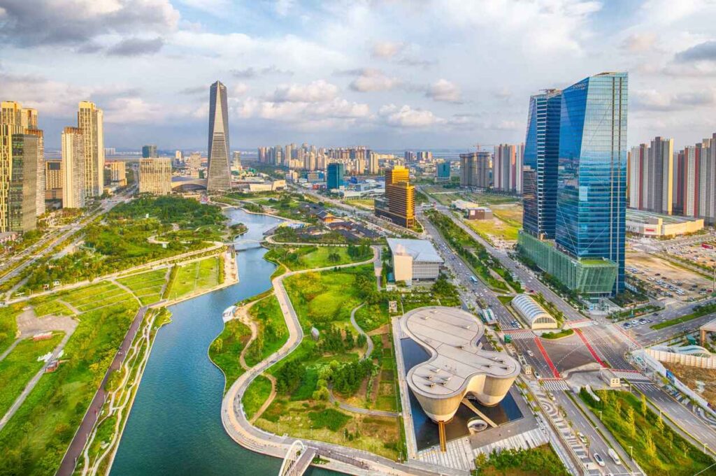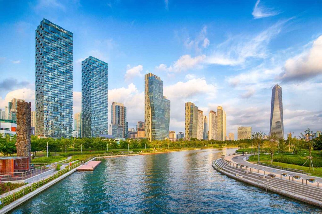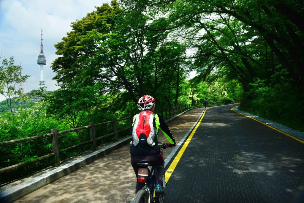 หนึ่งในนั้นคือ แม่น้ำฮันกัง พื้นที่กลางกรุงโซลที่เป็นเหมือนพื้นที่ส่วนกลางของเมือง ผู้คนออกมาเดินเล่น ออกกำลังกาย ปั่นจักรยาน ปิกนิก และใช้เวลาหลังเลิกงาน ฮันกังไม่ได้เป็นสถานที่ท่องเที่ยวในความหมายเดิม ๆ แต่เป็นพื้นที่ ที่เมืองใช้ชีวิตร่วมกัน อีกแห่งคือ ย่านซงโด เมืองใหม่ที่เต็มไปด้วยความเป็นระเบียบ พื้นที่สีเขียว และบรรยากาศสงบ เป็นพื้นที่อยู่อาศัยจริงมากกว่าย่านท่องเที่ยว เป็นเมืองที่ไม่ได้มีอะไรให้ “ต้องรีบดู” แต่มีบรรยากาศที่ทำให้อยากอยู่ และ นัมซาน พื้นที่สีเขียวกลางกรุงโซล ที่คนท้องถิ่นใช้เดินเขา พักใจ และมองเมืองจากมุมสูง เป็นพื้นที่ที่ไม่ได้มีแค่หอคอย แต่มีเส้นทาง มีต้นไม้ และความเงียบที่ทำให้เมืองใหญ่มีพื้นที่ให้หายใจ