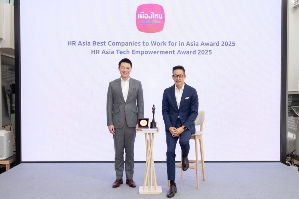 บริษัท เมืองไทยประกันชีวิต จำกัด (มหาชน) คว้า 2 รางวัลใหญ่ระดับสากล ด้านการบริหารทรัพยากรบุคคลและด้านการส่งเสริมการเรียนรู้และการใช้เทคโนโลยีภายในองค์กร ได้แก่ รางวัล “Best Companies to Work For in Asia 2025″ ที่ได้รับต่อเนื่องเป็นปีที่ 4 ตอกย้ำความเป็นองค์กรที่น่าทำงานที่สุดในเอเชีย และโดดเด่นด้านการบริหารทรัพยากรบุคคลอันเป็นเลิศ การสร้างสภาพแวดล้อมการทำงานที่เหมาะสม ยอมรับในคุณค่าของพนักงาน เน้นความสุขของพนักงานเป็นสำคัญ และรางวัล “Tech Empowerment” ซึ่งยกย่ององค์กรที่ใช้เทคโนโลยีสนับสนุนการพัฒนาองค์กรและยกระดับประสบการณ์การทำงานของพนักงานอย่างมีประสิทธิภาพ  จากนิตยสาร HR Asia ซึ่งเป็นสื่อชั้นนำด้านทรัพยากรบุคคลในภูมิภาคเอเชีย  โดยทั้งสองรางวัลสะท้อนให้เห็นถึงความมุ่งมั่นอย่างต่อเนื่องของเมืองไทยประกันชีวิตในการให้ความสำคัญกับการพัฒนาบุคลากร การสร้างสภาพแวดล้อมการทำงานที่มีคุณค่า รวมถึงการนำเทคโนโลยีมาประยุกต์ใช้เพื่อยกระดับการทำงานให้มีประสิทธิภาพมากยิ่งขึ้น