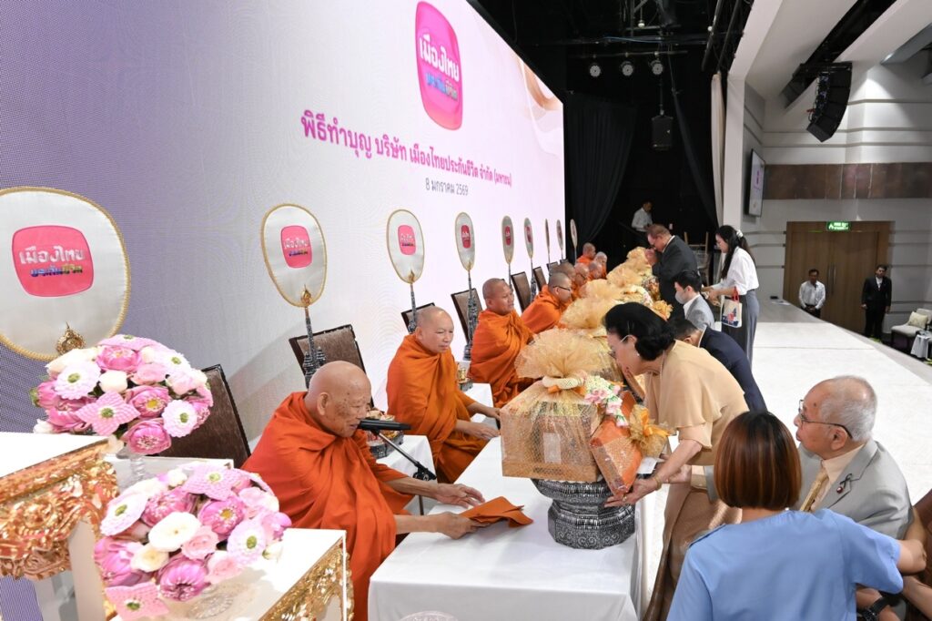 บริษัท เมืองไทยประกันชีวิต จำกัด (มหาชน) จัดพิธีทำบุญเสริมสิริมงคล เนื่องในโอกาสต้อนรับปีใหม่ ปี 2569 โดยมี นายโพธิพงษ์ ล่ำซำ ประธานกรรมการ เป็นประธานในพิธี พร้อมด้วยนางยุพา ล่ำซำ นายสาระ ล่ำซำ ประธานเจ้าหน้าที่บริหาร ดร.สุธี โมกขะเวส กรรมการผู้จัดการ นายภูมิชาย ล่ำซำ ที่ปรึกษาประธานเจ้าหน้าที่บริหาร คณะผู้บริหารและพนักงานร่วมในพิธี พร้อมประกาศเดินหน้าดำเนินธุรกิจด้วยความมุ่งมั่นในการส่งมอบความสุขและรอยยิ้มให้แก่ผู้มีส่วนเกี่ยวข้องทุกฝ่าย ควบคู่ไปกับการพัฒนาอย่างยั่งยืนในทุกมิติ ทั้งด้านผลิตภัณฑ์ ช่องทางการขาย คุณภาพการให้บริการที่ดี เข้าถึงได้ง่าย นวัตกรรมใหม่ ๆ ที่ตอบโจทย์ความต้องการได้อย่างลงตัว และการพัฒนาด้านบุคลากรรอบด้าน โดยมีเป้าหมายในการเป็นคู่คิดด้านการวางแผนชีวิตและสุขภาพที่ลูกค้าวางใจ พร้อมอยู่เคียงข้างดูแลในทุกช่วงของชีวิต อีกทั้งยังรักษาความเป็นผู้นำในธุรกิจที่เติบโตอย่างมั่นคงแข็งแกร่งอย่างต่อเนื่อง พิธีจัดขึ้น ณ เมืองไทยประกันชีวิต สำนักงานใหญ่