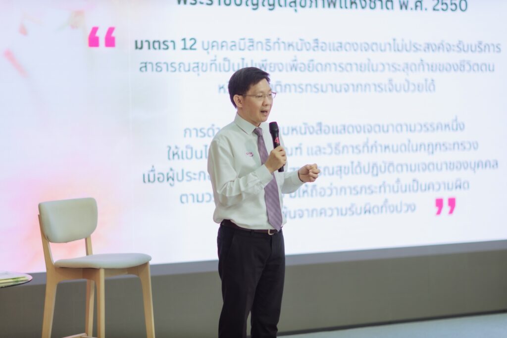 สำหรับ กิจกรรม Living To Smile สบายใจ ยิ้มได้ จากรุ่นสู่รุ่น เป็นกิจกรรมที่มุ่งเน้นให้ผู้เข้าร่วมได้เรียนรู้ทักษะสื่อสารเพื่อเสริมสร้างความสัมพันธ์ให้เข้าใจตนเองและคนที่คุณรัก โดยคุณดุจดาว วัฒนปกรณ์ ชวนคุยชวนคิดเรื่องที่ต้องเตรียมพร้อมในชีวิต โดยคุณหญิงจำนงศรี หาญเจนลักษณ์ ผู้ก่อตั้ง บริษัท ชีวามิตร วิสาหกิจเพื่อสังคม รศ.นพ.ฉันชาย สิทธิพันธุ์ อาจารย์สาขาวิชาโรคระบบทางเดินหายใจ คณะแพทยศาสตร์ จุฬาลงกรณ์มหาวิทยาลัย และ พญ.นิษฐา เอื้ออารีมิตร ผู้อำนวยการโรงพยาบาลคูน ปิดท้ายด้วย Workshop ทบทวนแผนชีวิต พร้อมทำ Living will ผ่านสมุดบันทึกเพื่อนชีวิต โดย นพ.ภิญโญ ศรีวีระชัย คุณหมอด้าน Palliative care และคุณไพศาล ลิ้มสถิตย์ นักกฎหมายผู้เชี่ยวชาญด้านกฎหมาย Living Will พร้อมสอบถามข้อสงสัยเกี่ยวกับการดูแลผู้ป่วยระยะสุดท้าย และด้านกฎหมายต่าง ๆ แบบ Exclusive