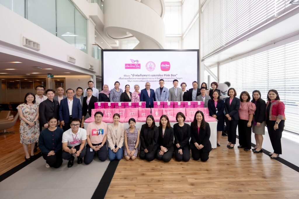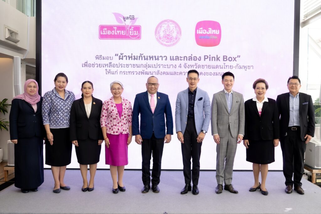 เมืองไทยประกันชีวิต และ มูลนิธิเมืองไทยยิ้ม ส่งมอบผ้าห่มกันหนาว และกล่อง Pink Box เพื่อช่วยเหลือประชาชนกลุ่มเปราะบางให้แก่ กระทรวงการพัฒนาสังคมและความมั่นคงของมนุษย์
