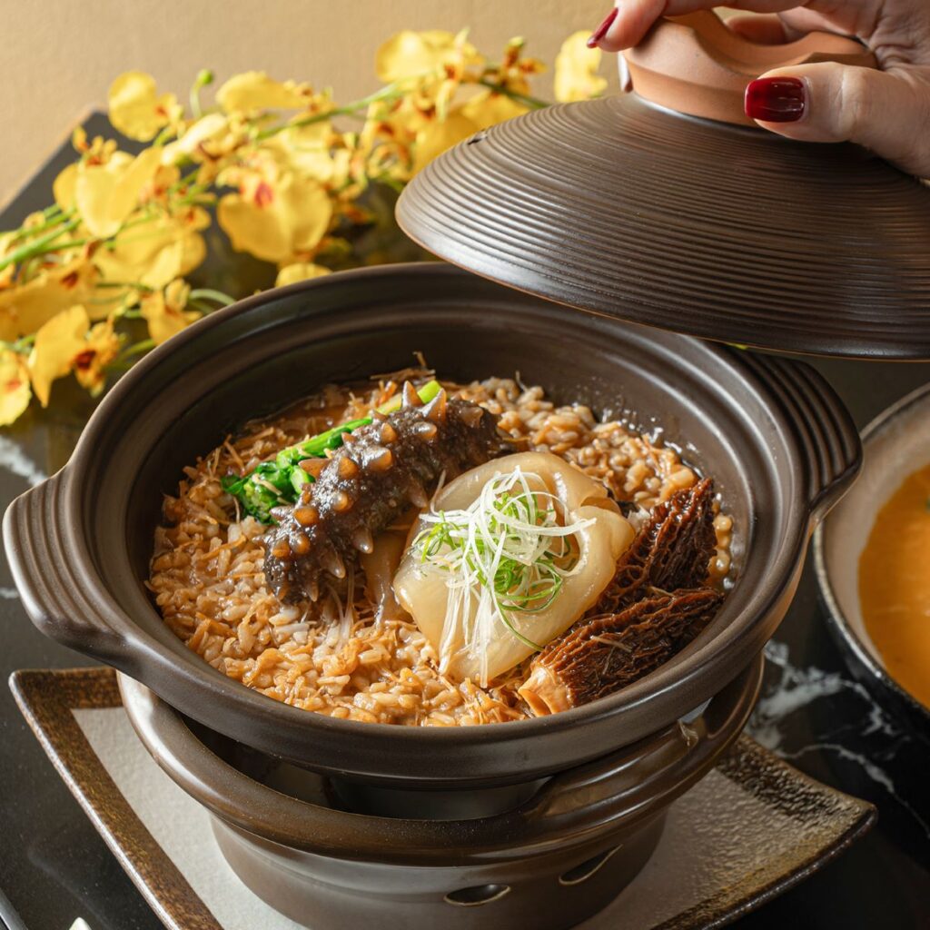 เมนูซิกเนเจอร์ที่ผสมผสานวัฒนธรรมอาหารตะวันตกและตะวันออก ข้าวรีซอตโต้ตุ๋นในหม้อดินแบบจีนโบราณ อัดแน่นด้วยวัตถุดิบมงคลหายาก