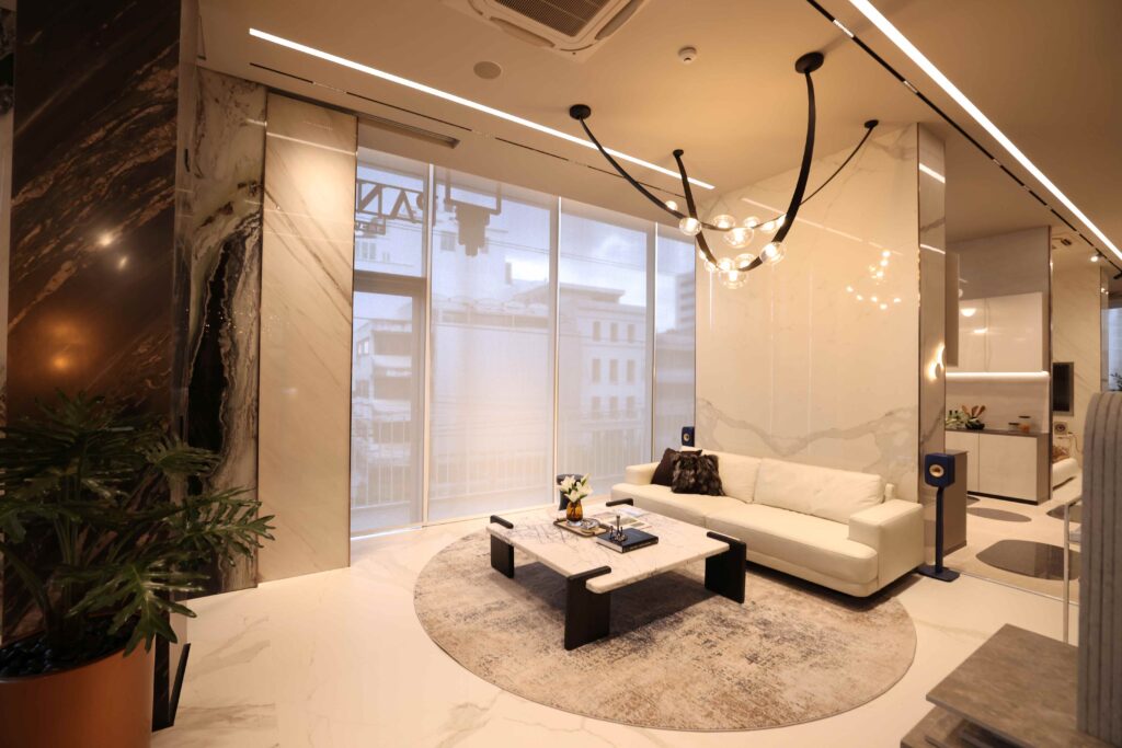 การนำเสนอภายใต้คอนเซ็ปต์​ “Next Chapter of Luxury Living” มาในรูปแบบของ House Experience เพื่อให้ลูกค้าได้สัมผัส Product Showcase ผ่านโซนตัวอย่างที่ใช้โชว์รูมแบ่งโซนจริง ทั้งในห้องลีฟวิ่ง ห้องครัว ห้องน้ำ ห้องนอน และห้องเธียร์เตอร์ โดยผสมผสานงานหิน Evostone ระบบเสียง และบรรยากาศของร้านกาแฟ อีกทั้ง มีเฟอร์นิเจอร์จากแบรนด์หรูจากยุโรปอีกจำนวนมากแบบครบจบในที่เดียว