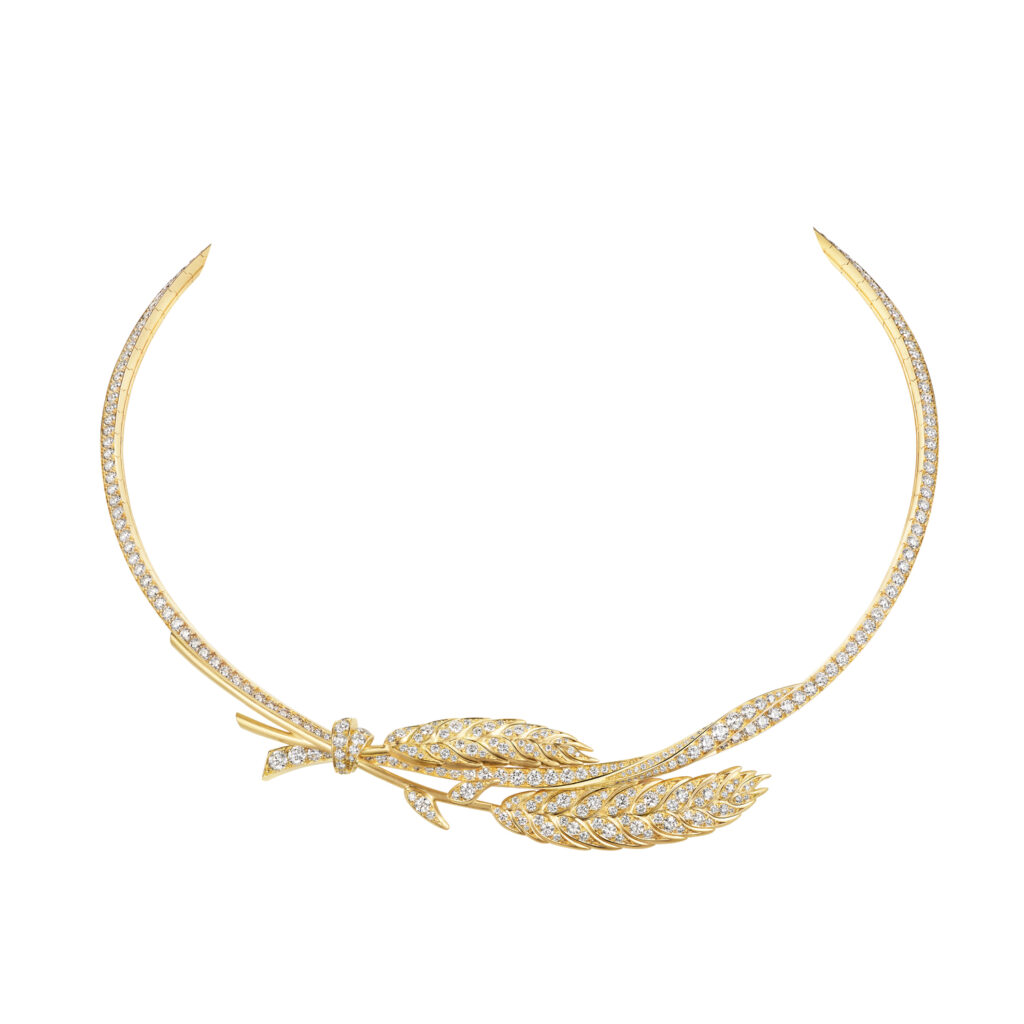 ผลงานชุดเครื่องประดับ L’Épi de Blé จาก Chaumet โดดเด่นด้วยความสง่างามเหนือกาลเวลาและคุณค่าล้ำค่า ถ่ายทอดผ่านความเชี่ยวชาญด้านงานฝีมืออันประณีตของเมซง ผลงานที่สร้างสรรค์ขึ้นใหม่นี้ยังเป็นการสดุดีต่อลวดลายรวงข้าวตามธรรมชาติ ซึ่งเป็นที่โปรดปรานของจักรพรรดินี Joséphine และจักรพรรดินี Marie-Louise ที่เคยประดับอยู่บนเรือนผม ลำคอ และฉลองพระองค์ตลอดช่วงเวลา 245 ปีที่ผ่านมา รวงข้าวยังคงสื่อถึงความมั่งคั่ง ความรุ่งเรือง และความอุดมสมบูรณ์ โดยถูกถ่ายทอดให้พลิ้วไหวดุจต้องสายลม ราวกับบทกวีแห่งชีวิตและการเคลื่อนไหว