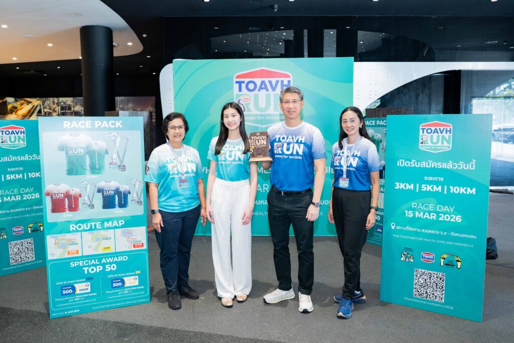 TOAVH เชิญชวนร่วมงานวิ่งการกุศล “TOAVH RUN X Homes of Hornbills” วันอาทิตย์ที่ 15 มีนาคม 2569 ณ สวนหลวง ร.9 เดินหน้าระดมทุนสร้างโพรงรังเทียมให้นกเงือก ในโครงการ Homes for Hornbills เปิดรับสมัครแล้ววันนี้!