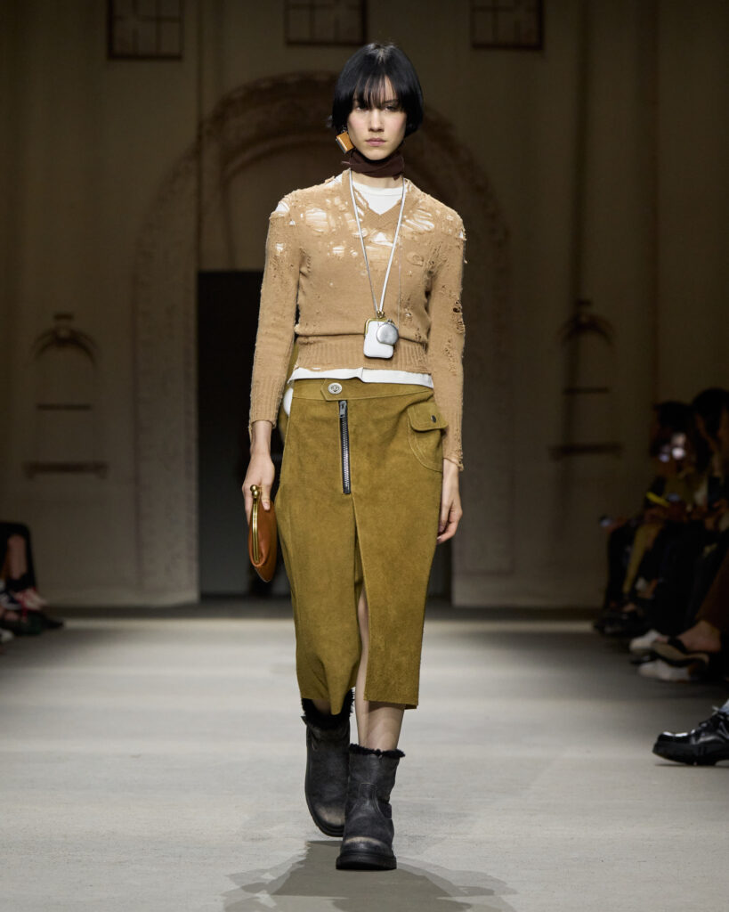 คอลเลคชั่น Spring 2026 ได้รับแรงบันดาลใจจากพลังและความมีชีวิตชีวาบนท้องถนนของนิวยอร์ก โดยนำเสนองานเครื่องหนังที่ได้รับการตกแต่งอย่างประณีต ทั้งหนังกลับ (suede) และนัปป้า (nappa) บางชิ้นมาพร้อมพื้นผิวเรียบเนียนแบบแว็กซ์ บางชิ้นมีเอฟเฟ็กต์ให้ดูเก่า มีลวดลายฟอยล์ที่หลุดลอก ตัวคอลเลคชั่นเสริมด้วยกางเกงทรงโอเวอร์ไซส์จากเดนิมรีเพอร์โพสพร้อมด้วยองค์ประกอบของชุดทำงาน นอกจากนี้ ยังมีกางเกงและกระโปรงตัดเย็บเข้ารูป โดยในซีซั่นนี้ เน้นโทนสีที่มีความสว่าง ประกอบด้วยสีขาว น้ำตาลฮันนี่ แทน และ ดำซีด ตัดกับสีซอฟต์พาสเทล เช่น ฟ้า เหลือง เขียว และ เสริมความโดดเด่นด้วยเมทัลลิก
