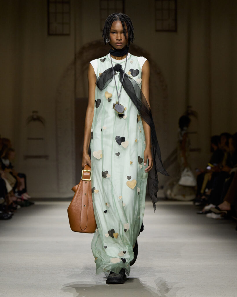 ความโรแมนติกถูกนำเสนอผ่านเดรสผ้าทูลล์และออร์แกนซ่าหลากหลายสี ทั้งพาสเทล ขาว และดำ โดยดีไซน์ที่เพิ่มความหวานและความสนุกให้กับลุคด้วยลวดลายขี้เล่น เช่น ดาว ลูกโป่ง หัวใจ และ เมฆ เลเยอร์ทับกับเสื้อทีเชิ้ตเดรส