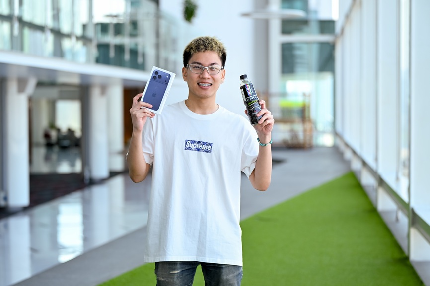 คุณศฐา ชัยมงคลทรัพย์ ผู้คว้ารางวัล โทรศัพท์มือถือ iPhone 17 Pro Max กล่าวว่า “กิจกรรมนี้ไม่ใช่แค่การออกกำลังกาย แต่เป็นการพิสูจน์ขีดจำกัดของตัวเองภายใน 100 วินาที ผมเลือกท่าแพลงก์และเพิ่มความท้าทายด้วยการถ่วงน้ำหนักจากขวด 100PLUS PRO รู้สึกภูมิใจมากที่ความพยายามครั้งนี้ได้รับการคัดเลือก”