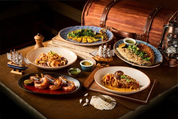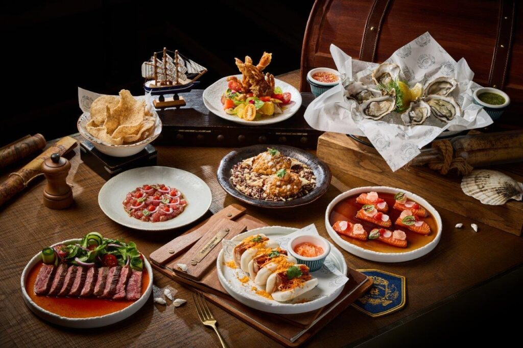 ในหมวด Navigator’s Specials นำเสนออาหารทะเลคุณภาพเยี่ยมในสไตล์นานาชาติ ตั้งแต่กุ้งแม่น้ำย่างซอสกระเทียมพริก ปลาเก๋าอบเคลือบกระเทียมพริกไทย ไปจนถึงเมนูซิกเนเจอร์อย่างข้าวซอยปูเส้นลิงกวินี ขณะที่ The Captain’s Fire เอาใจผู้ที่ชื่นชอบเมนูย่างไฟและสโลว์คุก ไม่ว่าจะเป็นสเต๊กวากิวแฟลงก์เสิร์ฟพร้อมชิมิชูรีแบบไทยและน้ำจิ้มแจ่ว หมูเสียบไม้ย่างถ่านกับมะละกอดอง และซี่โครงเนื้อตุ๋นซอสมัสมั่นเข้มข้น