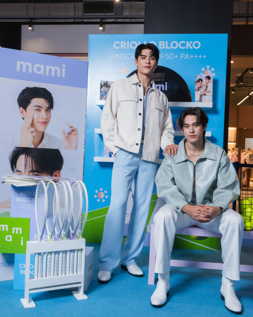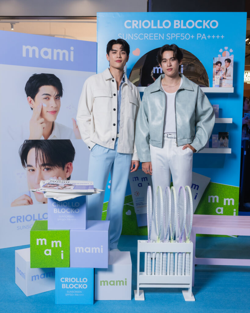 ส่วน ‘จอส เวอาห์ – กวิน แคสกี้’ เตรียมพร้อมรับมือกับแดดหน้าร้อนอย่างมั่นใจในทุกวันด้วย ‘mami Criollo Blocko Sunscreen SPF50+ PA++++’ เนื้อสัมผัสบางเบา ช่วยปกป้องผิวจากแสงแดดและแสงสีฟ้า (Blue Light) และบอกว่า “ด้วยความที่พวกเราเป็นคนที่ชอบทำกิจกรรมกลางแจ้ง ยิ่งได้มีครีมกันแดดที่ดีมาช่วยปกป้องผิว ยิ่งมีความมั่นใจ แต่ถึงจะไม่ได้เจอแดดก็จะต้องทาเป็นประจำเพราะแสงจากไฟในห้องหรือจากมือถือก็มีผลต่อผิวด้วยเช่นกันครับ”