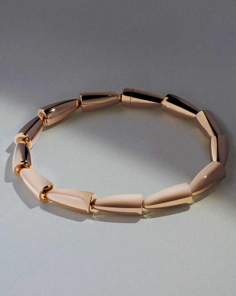 ภายใต้ปรัชญา ‘ความงามแห่งความเรียบง่าย’ ที่ยึดถือเป็นหัวใจหลักของการสร้างสรรค์ทุกชิ้นงาน เครื่องประดับของเมซงจึงสามารถถ่ายทอดผ่านรูปทรงอันบริสุทธิ์ ทว่าทรงพลัง สอดประสานด้วยจังหวะแห่งการเคลื่อนไหวอันลื่นไหลสะกดทุกสายตา เชื้อเชิญให้สัมผัสพื้นผิวของวอลุ่มที่โอบอ้อมอย่างมีมิติ อันเป็นซิกเนเจอร์เฉพาะตัว พร้อมกันนั้นยังได้รับการรังสรรค์ขึ้นด้วยโรสโกลด์เฉดพิเศษอันเป็นเอกลักษณ์ ช่วยขับผิวให้เปล่งประกายงดงามในทุกโทนสี และถ่ายทอดความสง่างามแบบชาวมิลานที่สุขุม ละเมียดละไม ทั้งนี้ในกลุ่ม High Jewellery และ Fine Jewellery อัญมณีที่ได้รับ
