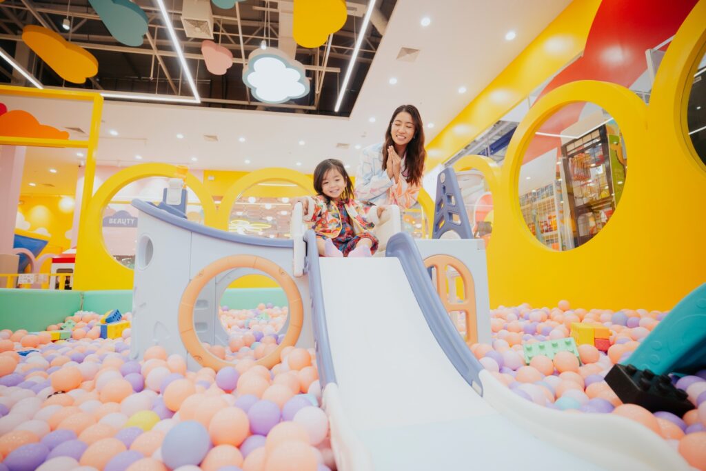 Sunday Playland ได้ออกแบบพื้นที่ให้แต่ละสาขามีเอกลักษณ์เฉพาะตัว เติมสีสันและธีมที่แตกต่าง เพื่อกระตุ้นทั้งจินตนาการ ความคิดสร้างสรรค์ และทักษะการเข้าสังคมของเด็กๆ ผ่านกิจกรรมที่หลากหลาย ไม่ว่าจะเป็นโซนปีนป่ายปล่อยพลัง บ่อบอลขนาดใหญ่ ตัวต่อเสริมพัฒนาการ ไปจนถึงพื้นที่ Role Play ที่เปิดโอกาสให้น้องๆ ได้สวมบทบาทตามจินตนาการ ทุกพื้นที่ถูกคิดมาอย่างพิถีพิถัน เพื่อให้ทุกช่วงเวลาที่ Sunday Playland ได้รับทั้งความสนุกและการเรียนรู้ในบรรยากาศที่อบอุ่นและเป็นมิตรกับทุกครอบครัว