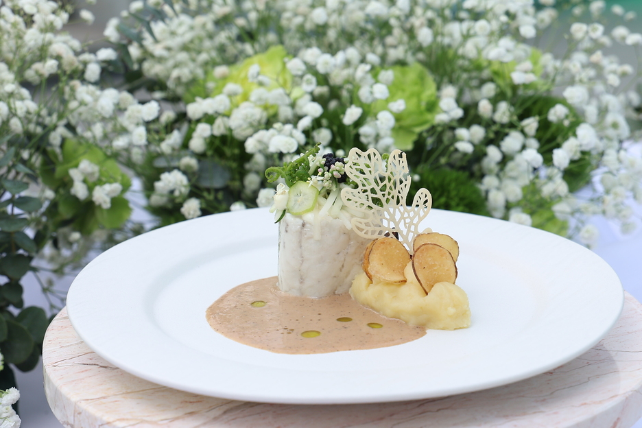 • Terra Verde: A Thai Expression เมนูปลาที่หยิบวัตถุดิบท้องถิ่นอย่าง “กะปิ” มาตีความใหม่ในรูปแบบครีมซอสกะปิแบบตะวันตก ซึ่งทำจากครีมทำอาหาร ฟลอร่า โพรเฟสชันนัล ให้ความนุ่มนวล ไม่กลบกลิ่นวัตถุดิบทำให้ครีมและกะปิเข้ากันอย่างลงตัวและสามารถสร้างสีสันให้เมนูนี้ได้อย่างไม่น่าเชื่อ เสิร์ฟพร้อมแก่นตะวันบด เพื่อพรีเซนต์ความเป็น “แก่นราก” แห่งความอร่อยจากพื้นดิน